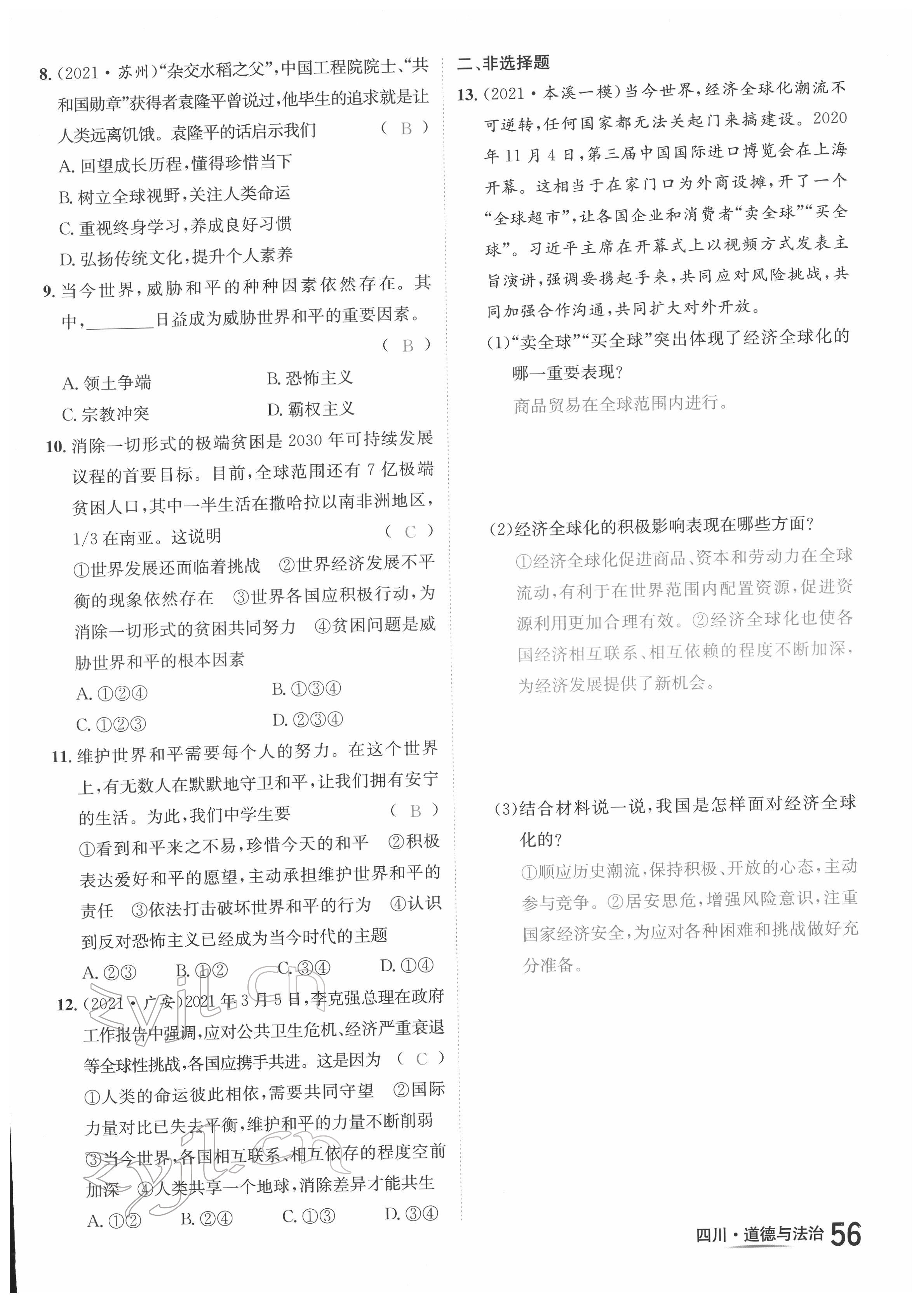 注:目前有些书本章节名称可能整理的还不是很完善,但都是按照顺序排列的,请同学们按照顺序仔细查找。练习册 2022年中考2号道德与法治四川专版 答案主要是用来给同学们做完题方便对答案用的,请勿直接抄袭。