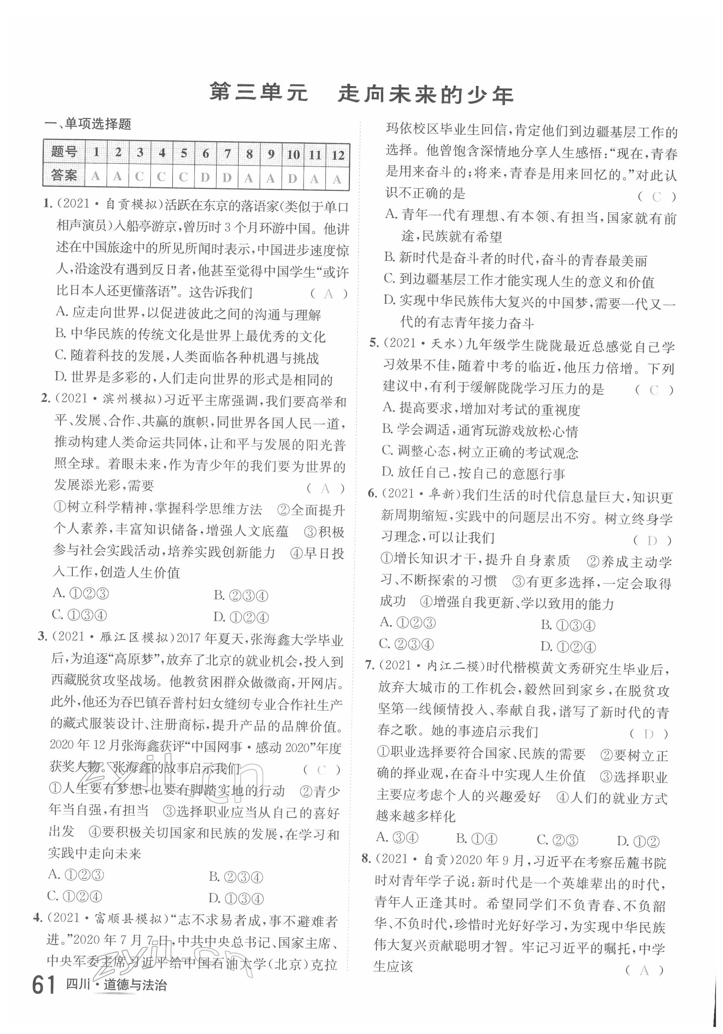 注:目前有些书本章节名称可能整理的还不是很完善,但都是按照顺序排列的,请同学们按照顺序仔细查找。练习册 2022年中考2号道德与法治四川专版 答案主要是用来给同学们做完题方便对答案用的,请勿直接抄袭。