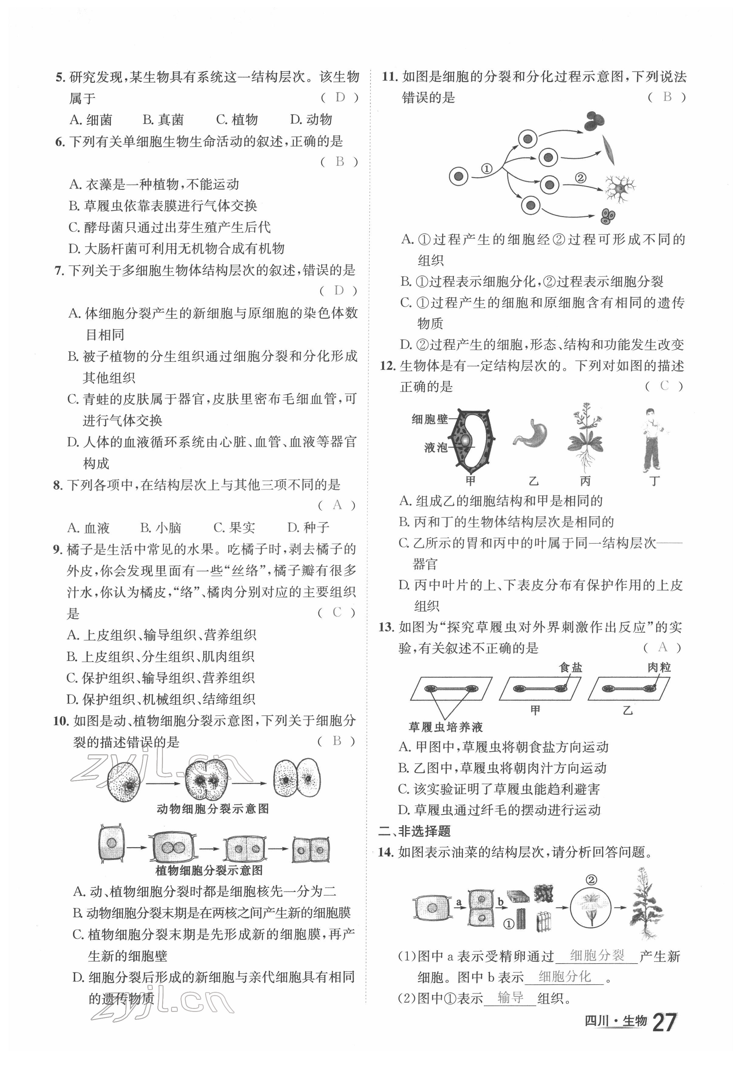 注:目前有些书本章节名称可能整理的还不是很完善,但都是按照顺序排列的,请同学们按照顺序仔细查找。练习册 2022年中考2号生物四川专版 答案主要是用来给同学们做完题方便对答案用的,请勿直接抄袭。