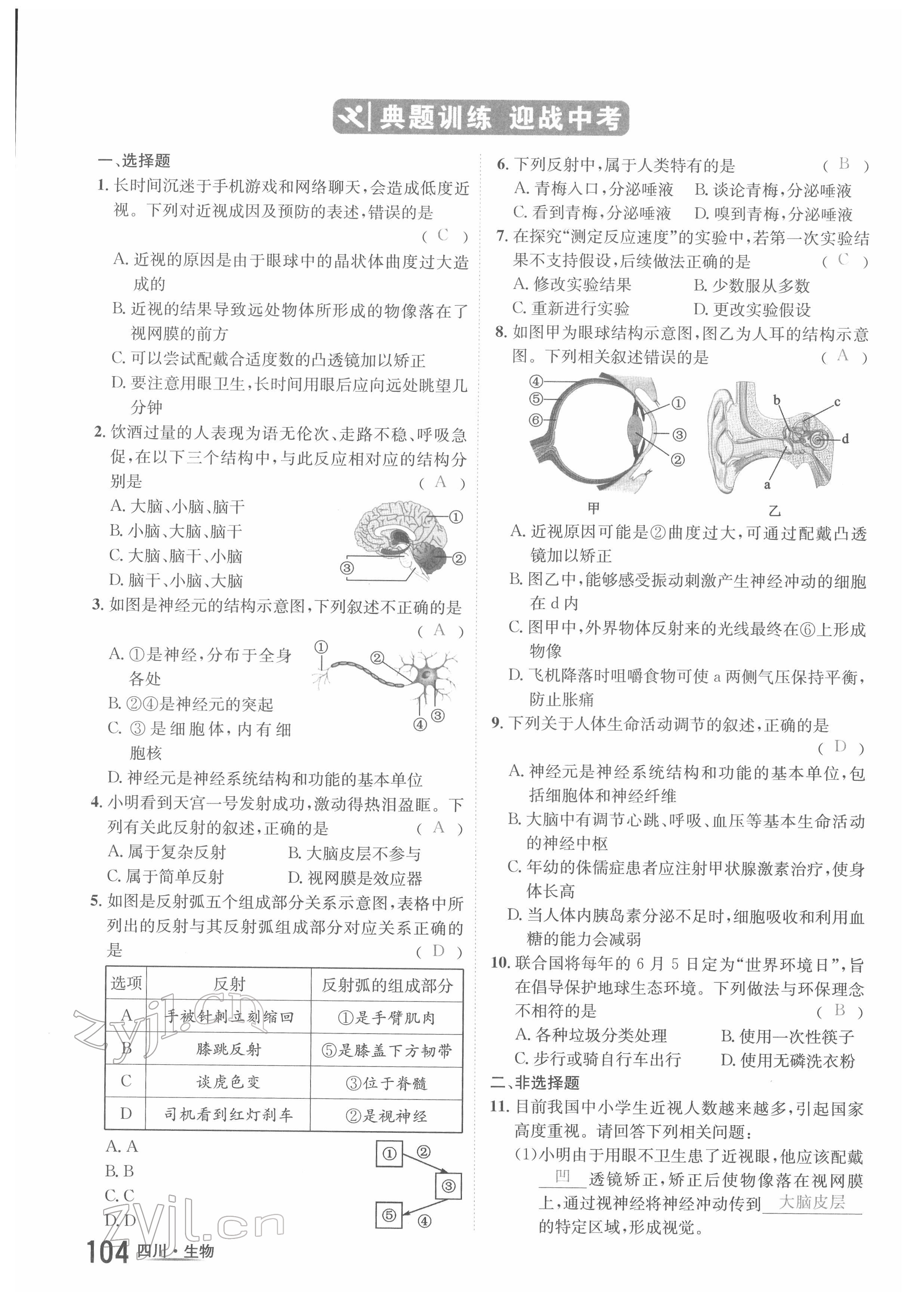 注:目前有些书本章节名称可能整理的还不是很完善,但都是按照顺序排列的,请同学们按照顺序仔细查找。练习册 2022年中考2号生物四川专版 答案主要是用来给同学们做完题方便对答案用的,请勿直接抄袭。