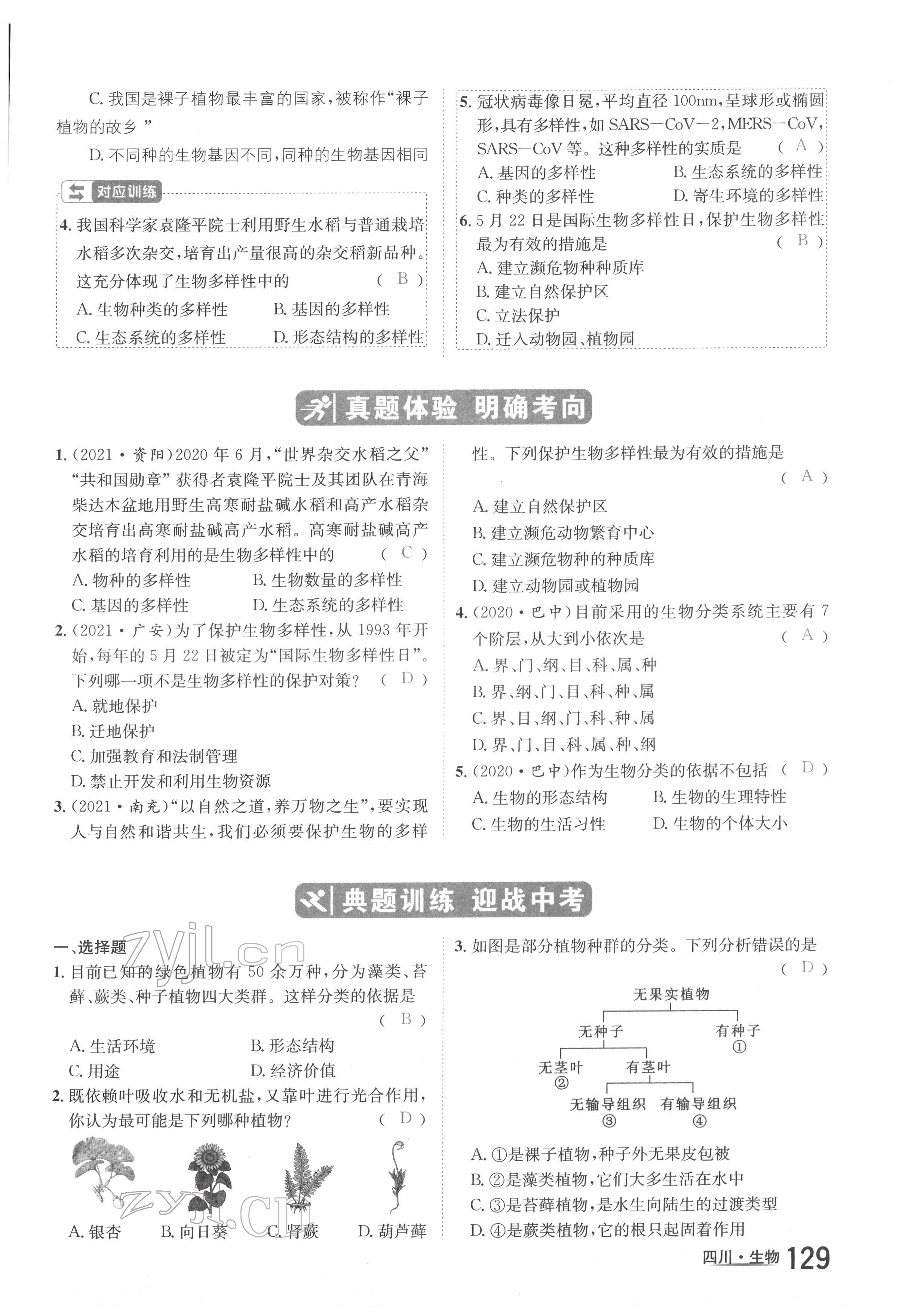 注:目前有些书本章节名称可能整理的还不是很完善,但都是按照顺序排列的,请同学们按照顺序仔细查找。练习册 2022年中考2号生物四川专版 答案主要是用来给同学们做完题方便对答案用的,请勿直接抄袭。