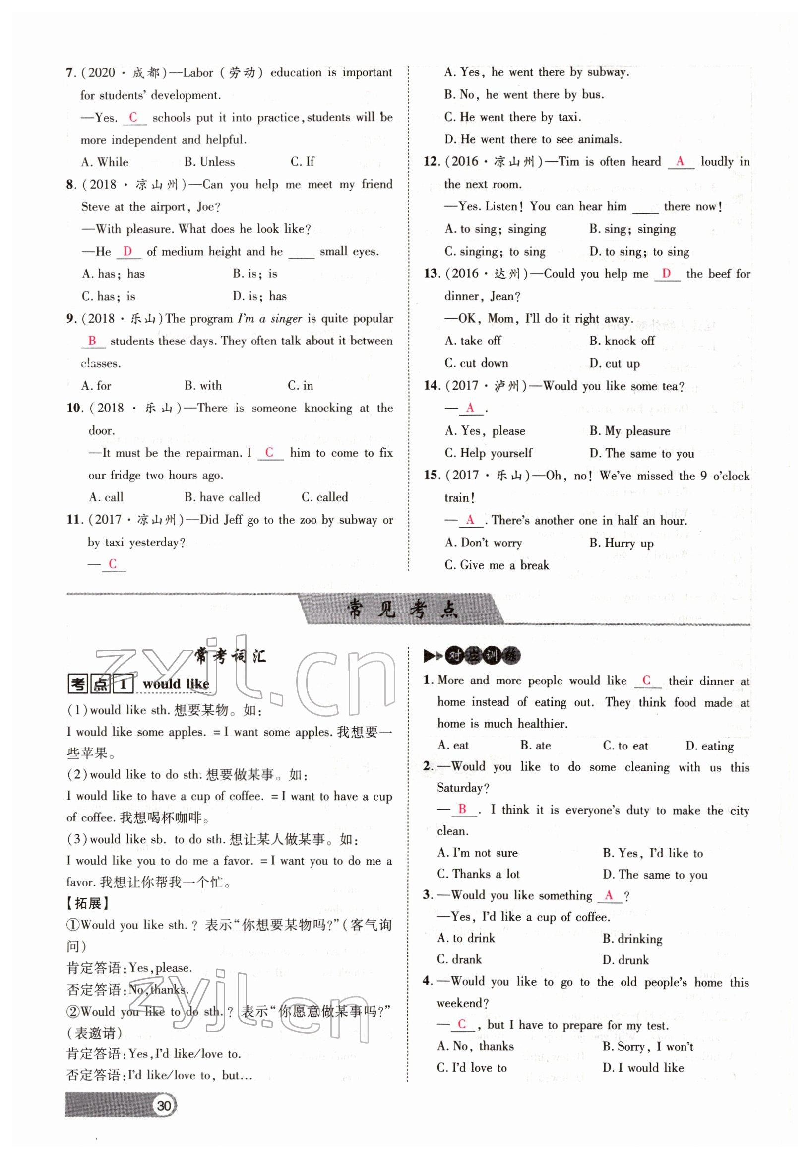 注:目前有些书本章节名称可能整理的还不是很完善,但都是按照顺序排列的,请同学们按照顺序仔细查找。练习册 2022年聚焦中考英语四川专版 答案主要是用来给同学们做完题方便对答案用的,请勿直接抄袭。