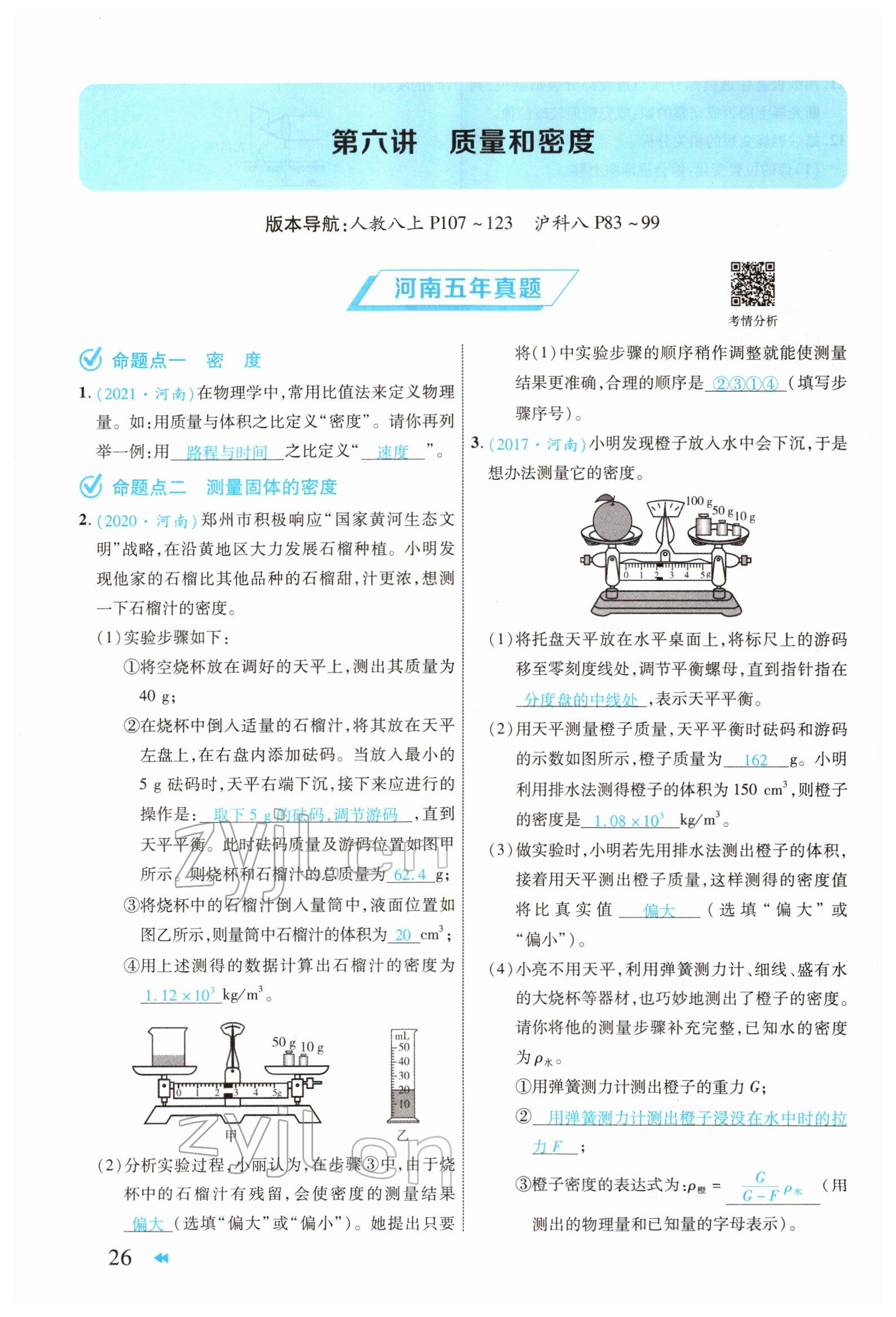 注:目前有些书本章节名称可能整理的还不是很完善,但都是按照顺序排列的,请同学们按照顺序仔细查找。练习册 2022年领航中考物理河南专版 答案主要是用来给同学们做完题方便对答案用的,请勿直接抄袭。