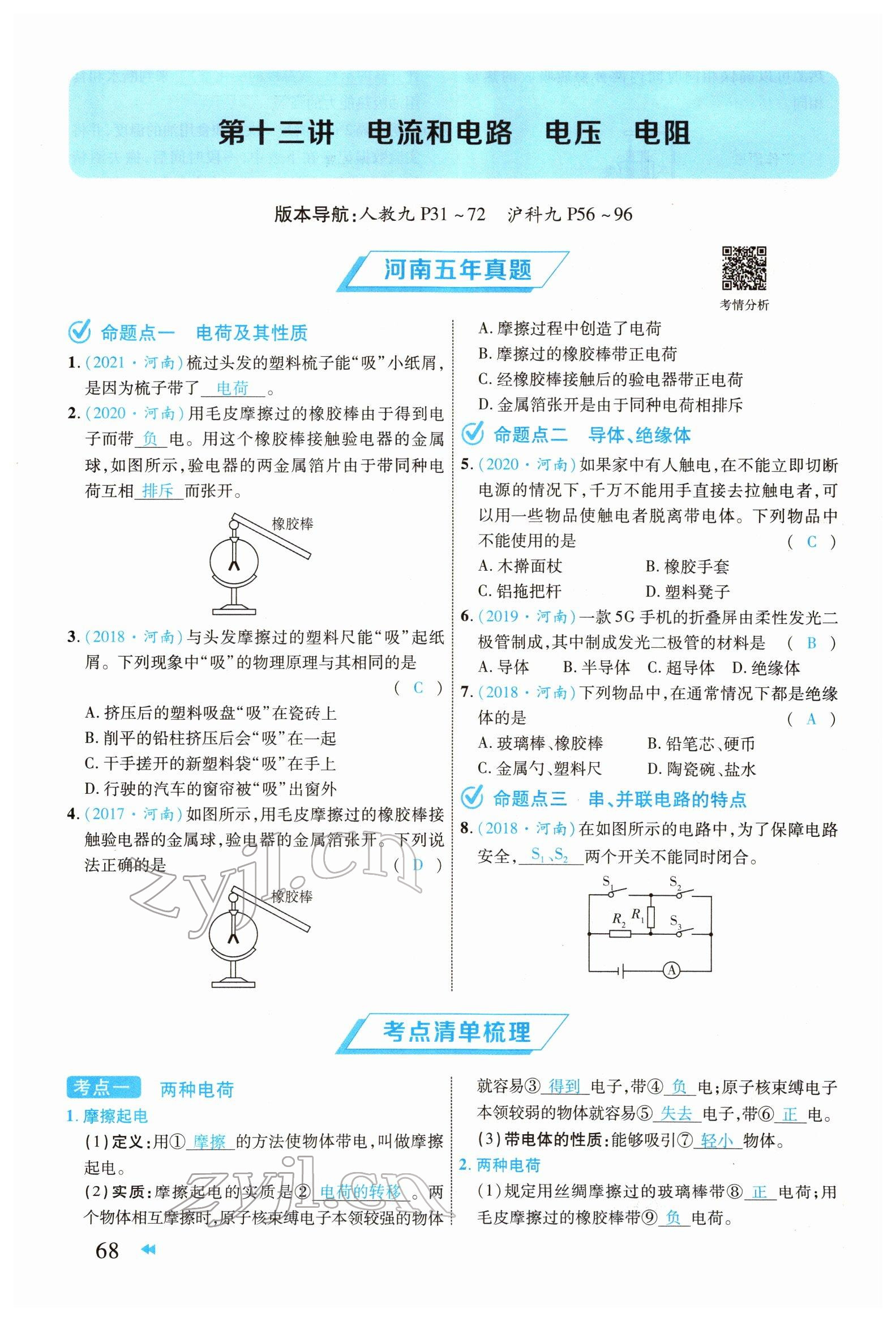注:目前有些书本章节名称可能整理的还不是很完善,但都是按照顺序排列的,请同学们按照顺序仔细查找。练习册 2022年领航中考物理河南专版 答案主要是用来给同学们做完题方便对答案用的,请勿直接抄袭。
