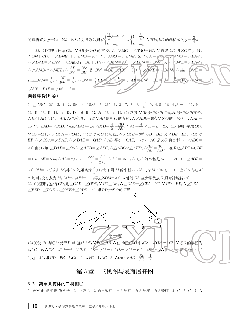 注:目前有些书本章节名称可能整理的还不是很完善,但都是按照顺序排列的,请同学们按照顺序仔细查找。练习册 2022年新课标学习方法指导丛书九年级数学下册人教版 答案主要是用来给同学们做完题方便对答案用的,请勿直接抄袭。