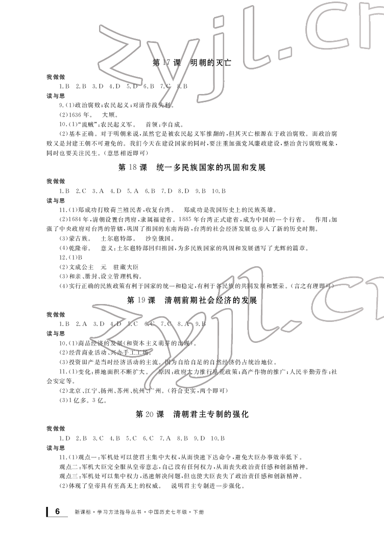 注:目前有些书本章节名称可能整理的还不是很完善,但都是按照顺序排列的,请同学们按照顺序仔细查找。练习册 2022年新课标学习方法指导丛书七年级历史下册人教版 答案主要是用来给同学们做完题方便对答案用的,请勿直接抄袭。