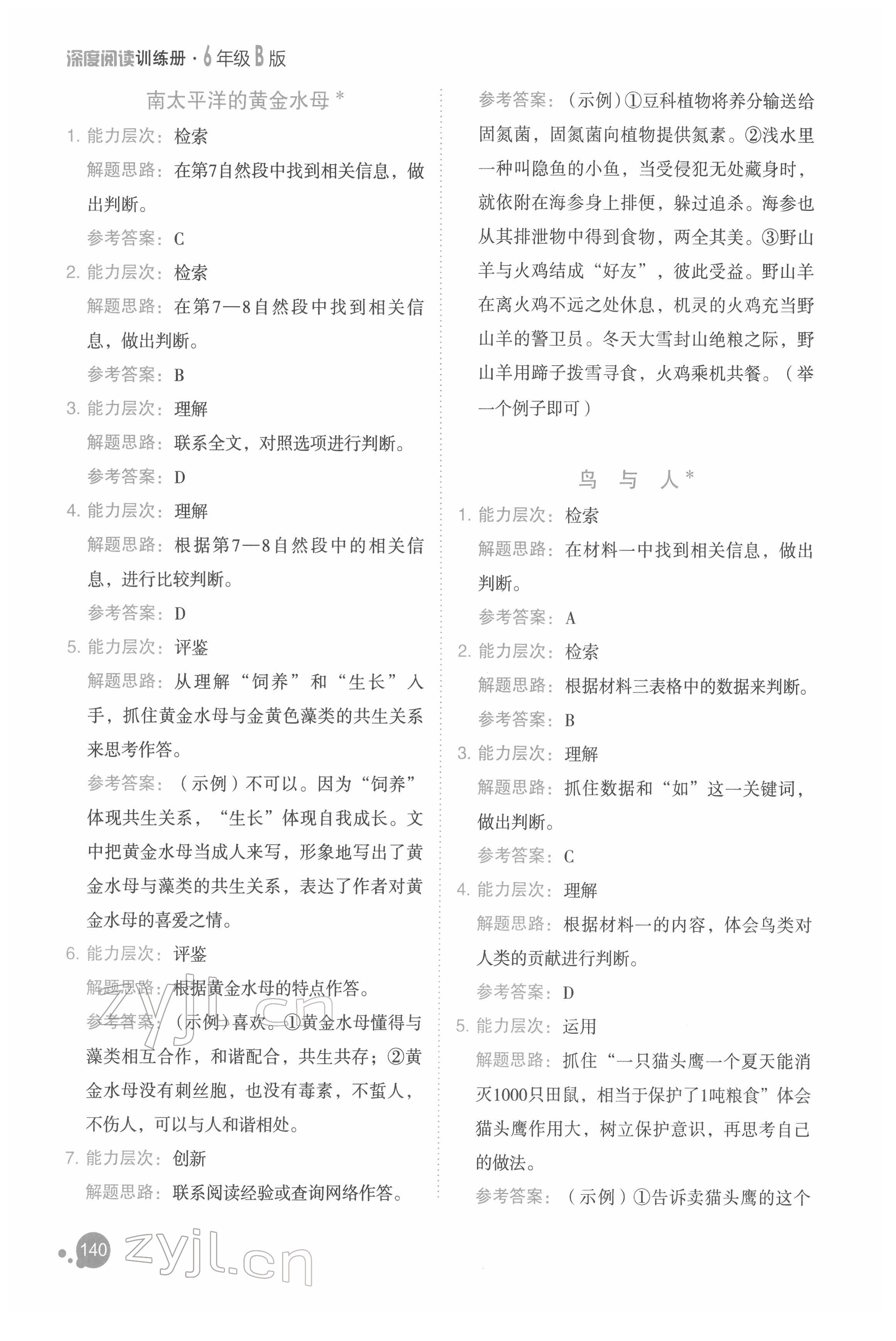 2022年深度阅读训练册六年级语文人教版B