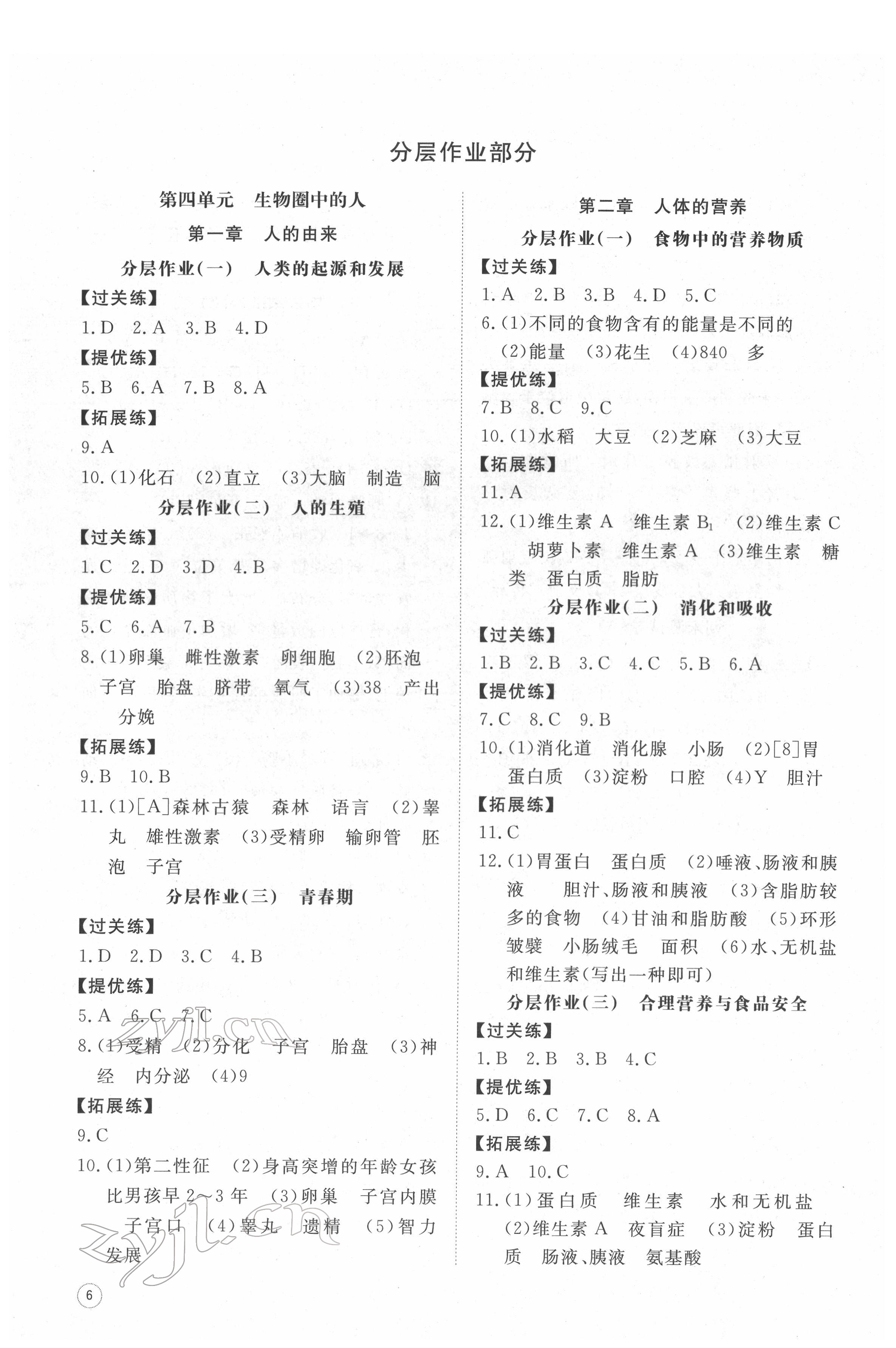 注:目前有些书本章节名称可能整理的还不是很完善,但都是按照顺序排列的,请同学们按照顺序仔细查找。练习册 2022年伴你学同步练习册提优测试卷七年级生物下册人教版 答案主要是用来给同学们做完题方便对答案用的,请勿直接抄袭。