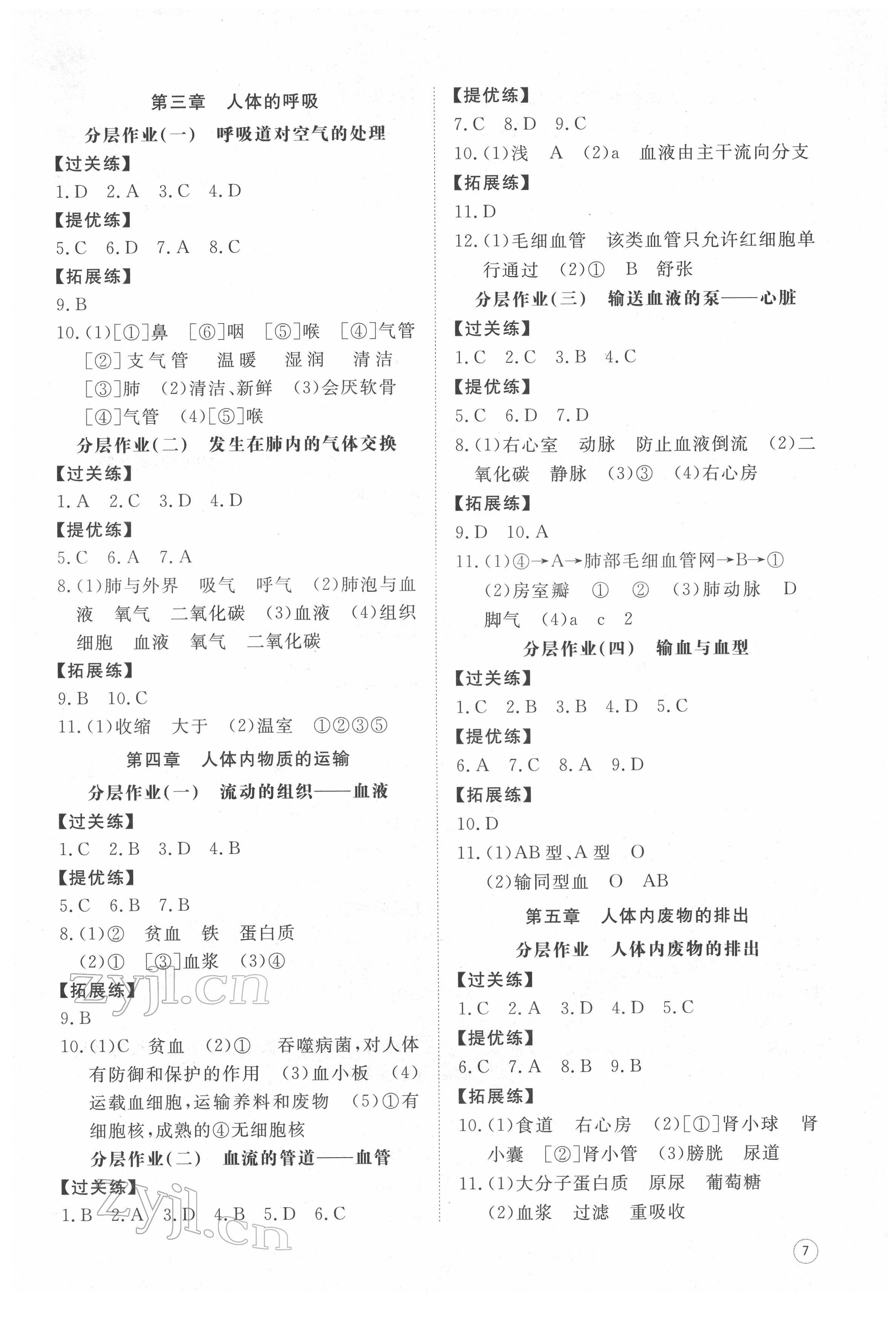 2022年伴你学同步练习册提优测试卷七年级生物下册人教版