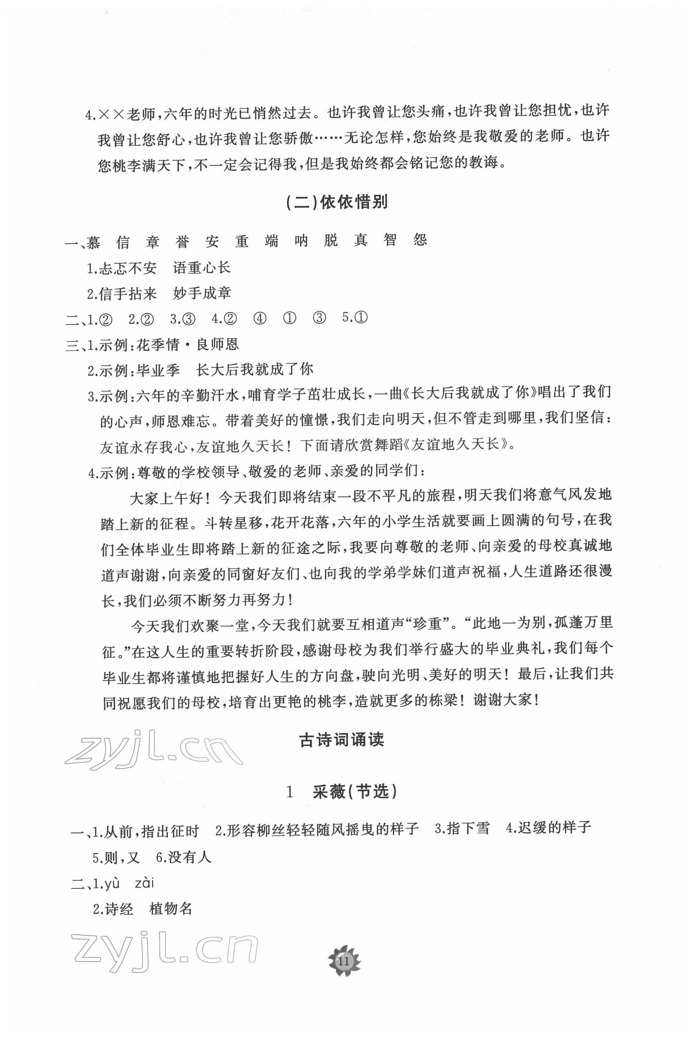 2022年伴你学同步练习册提优测试卷六年级语文下册人教版