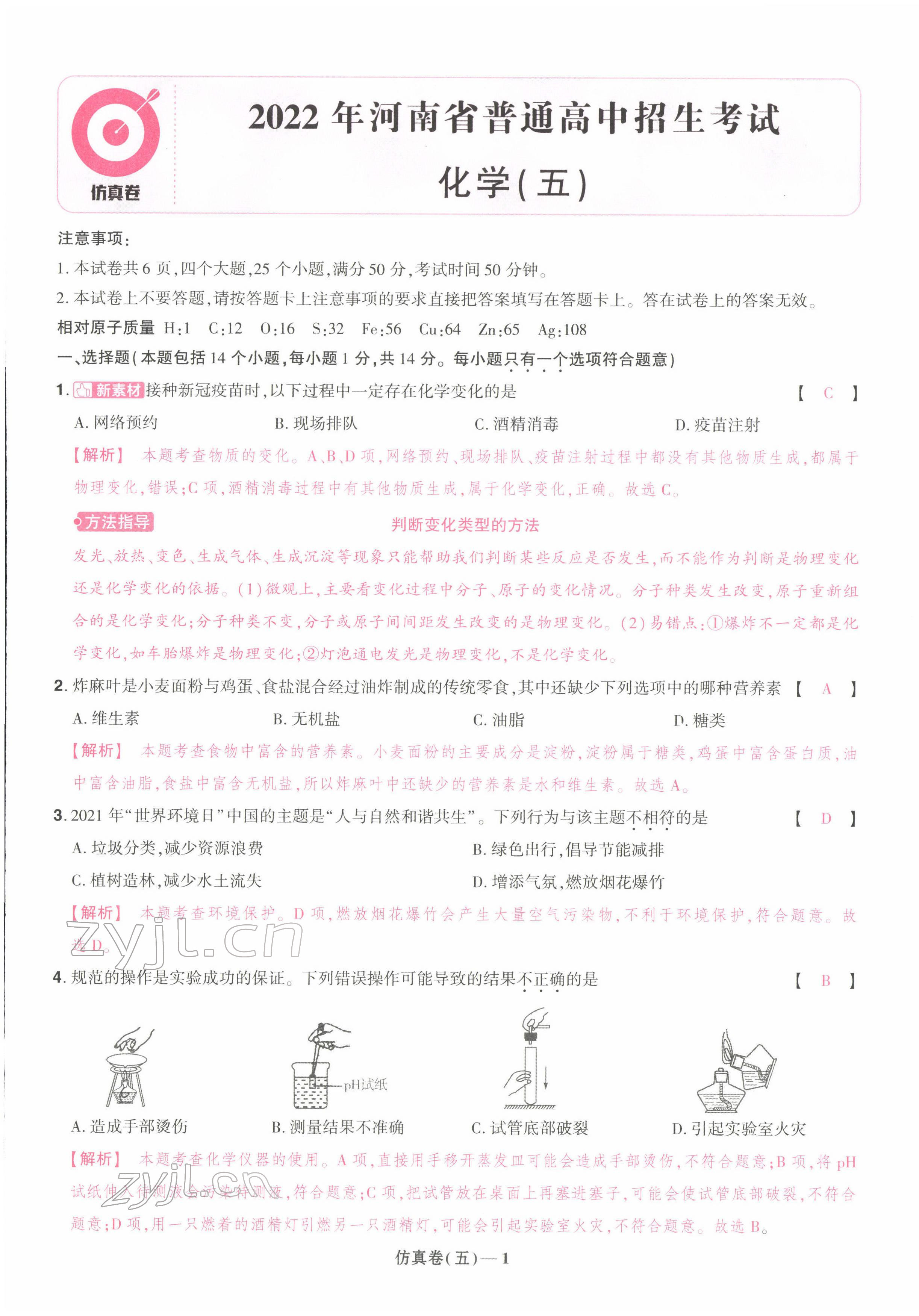 注:目前有些书本章节名称可能整理的还不是很完善,但都是按照顺序排列的,请同学们按照顺序仔细查找。练习册 2022年中考仿真卷化学河南专版 答案主要是用来给同学们做完题方便对答案用的,请勿直接抄袭。