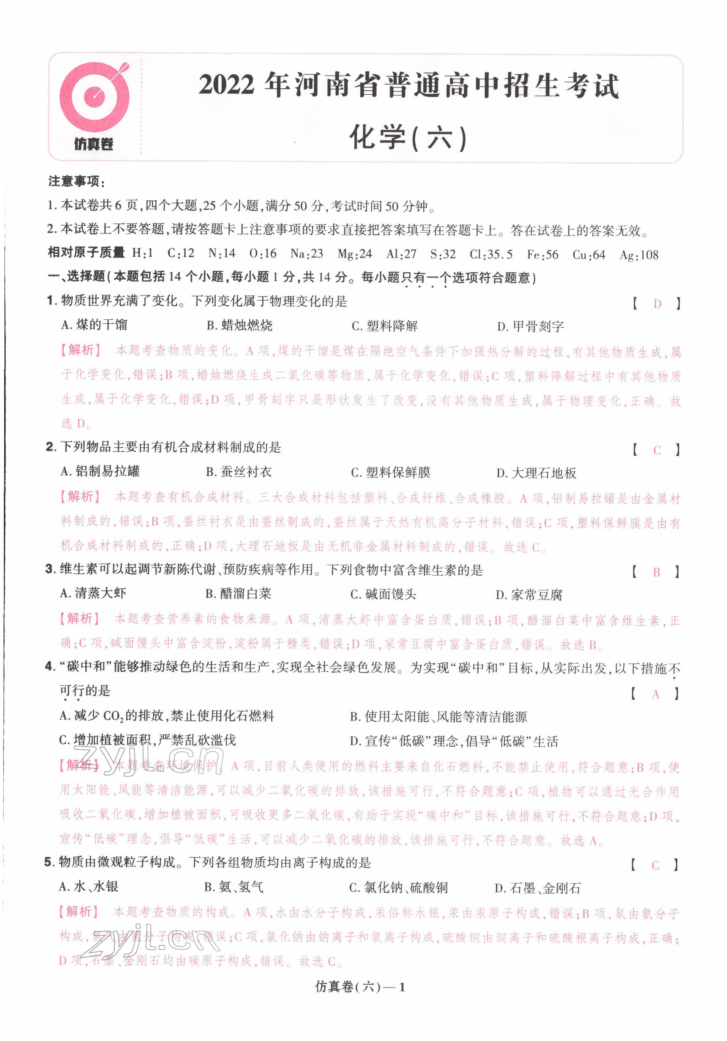注:目前有些书本章节名称可能整理的还不是很完善,但都是按照顺序排列的,请同学们按照顺序仔细查找。练习册 2022年中考仿真卷化学河南专版 答案主要是用来给同学们做完题方便对答案用的,请勿直接抄袭。