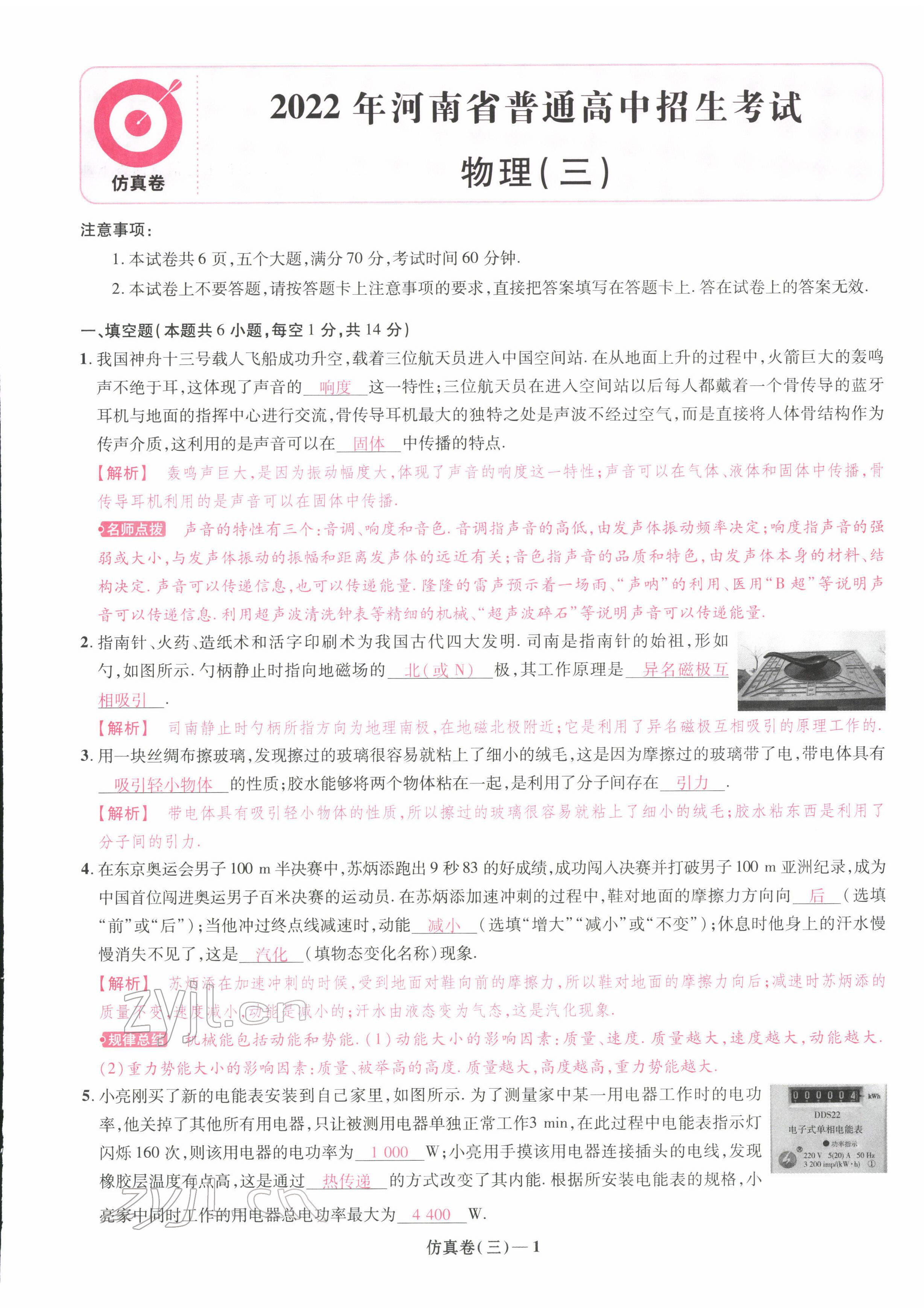 注:目前有些书本章节名称可能整理的还不是很完善,但都是按照顺序排列的,请同学们按照顺序仔细查找。练习册 2022年中考原创仿真卷物理河南专版 答案主要是用来给同学们做完题方便对答案用的,请勿直接抄袭。