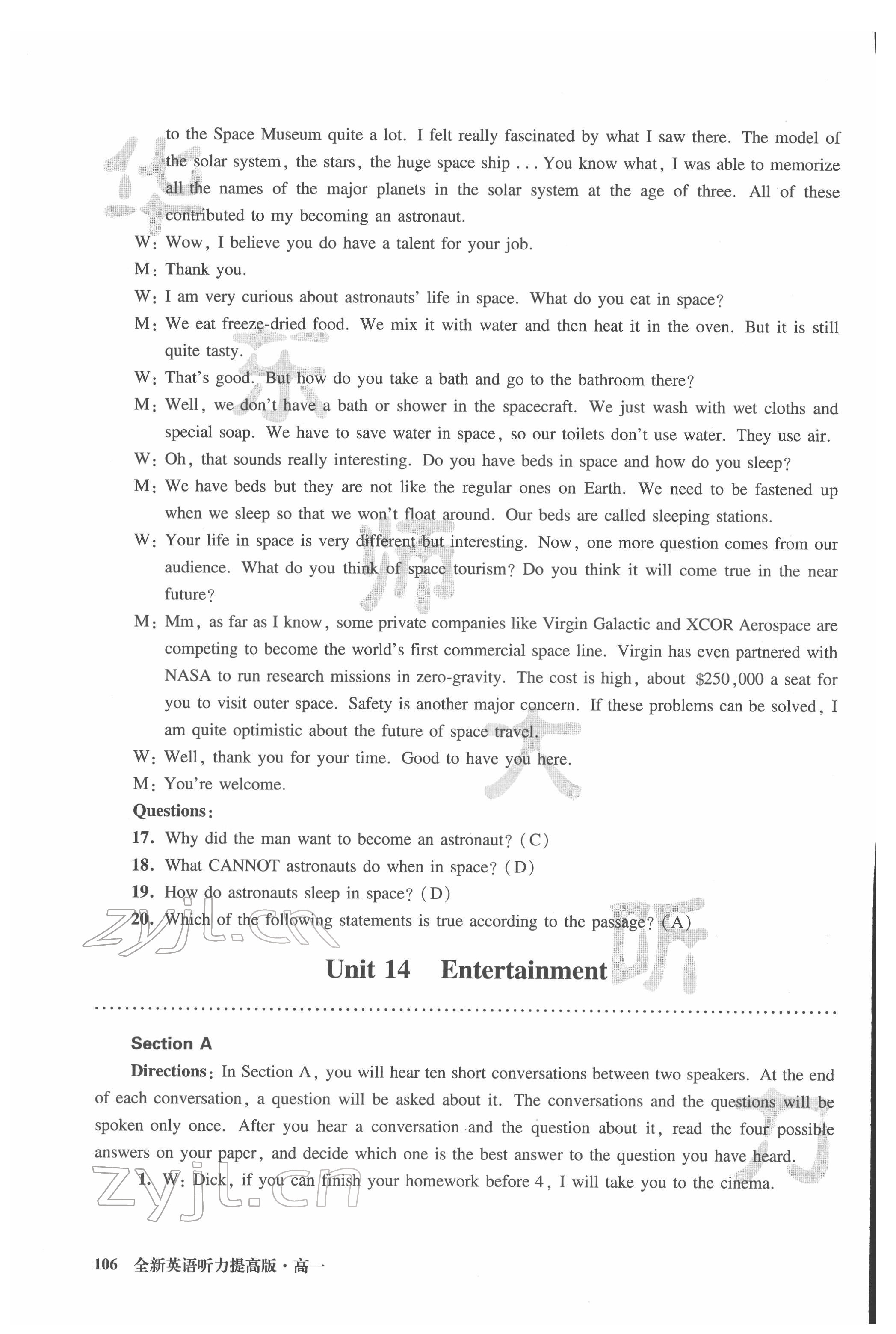 注:目前有些书本章节名称可能整理的还不是很完善,但都是按照顺序排列的,请同学们按照顺序仔细查找。练习册 2022年全新英语听力高一 答案主要是用来给同学们做完题方便对答案用的,请勿直接抄袭。