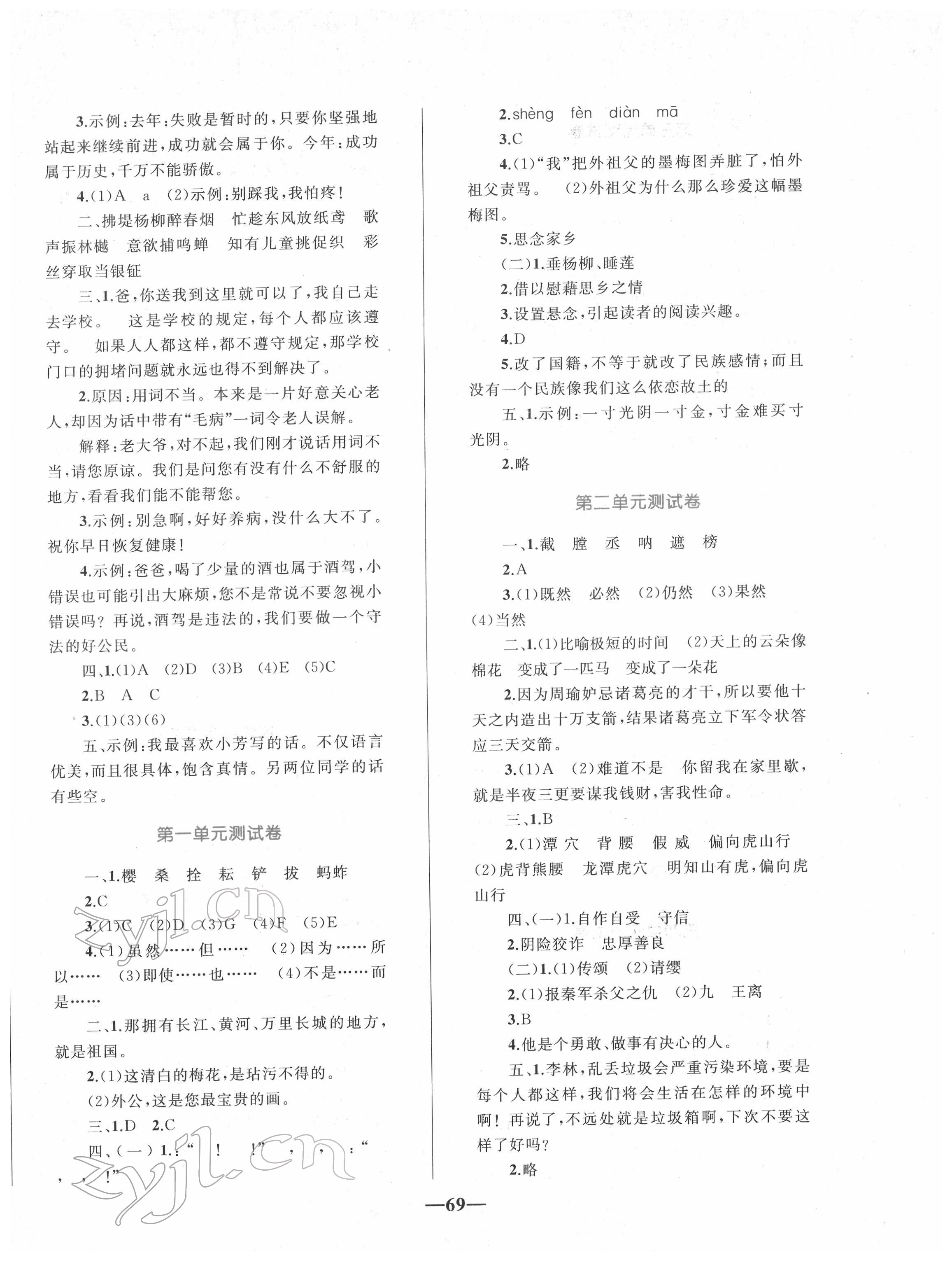 注:目前有些书本章节名称可能整理的还不是很完善,但都是按照顺序排列的,请同学们按照顺序仔细查找。练习册 2022年同步测控全优设计五年级语文下册人教版 答案主要是用来给同学们做完题方便对答案用的,请勿直接抄袭。