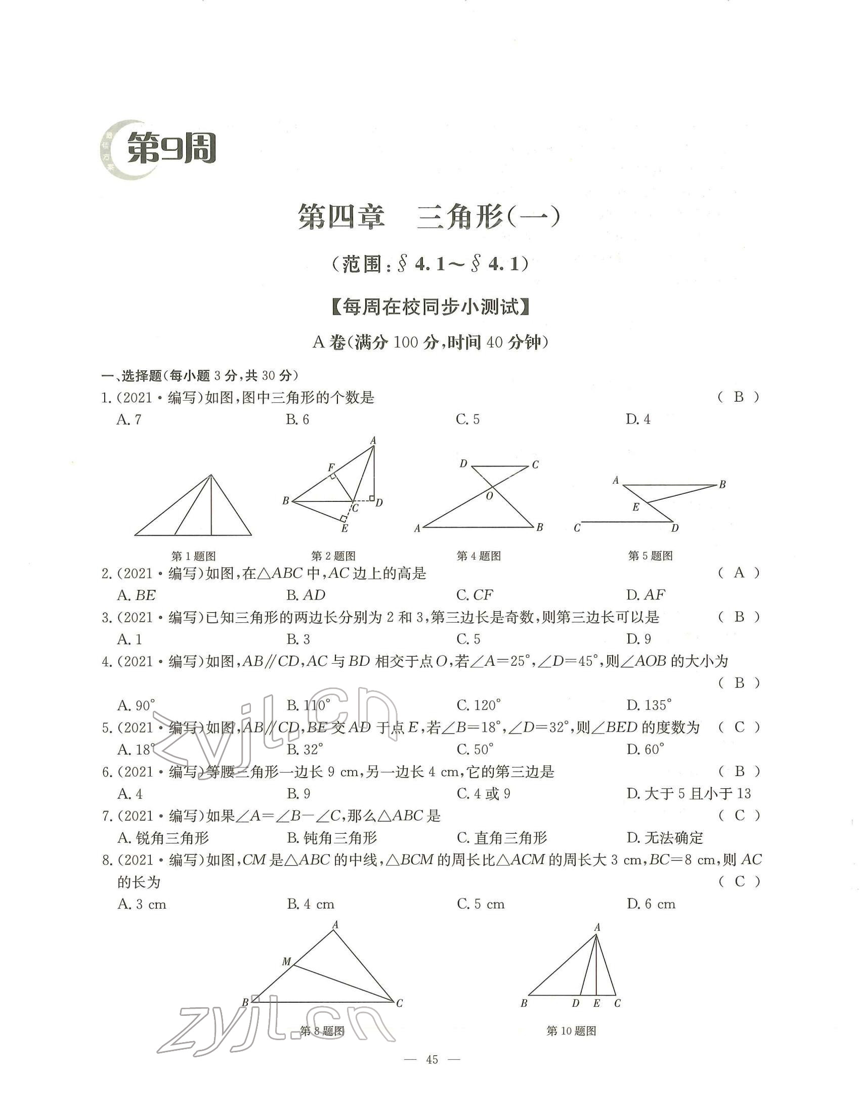 注:目前有些书本章节名称可能整理的还不是很完善,但都是按照顺序排列的,请同学们按照顺序仔细查找。练习册 2022年每周过手最佳方案七年级数学下册北师大版 答案主要是用来给同学们做完题方便对答案用的,请勿直接抄袭。