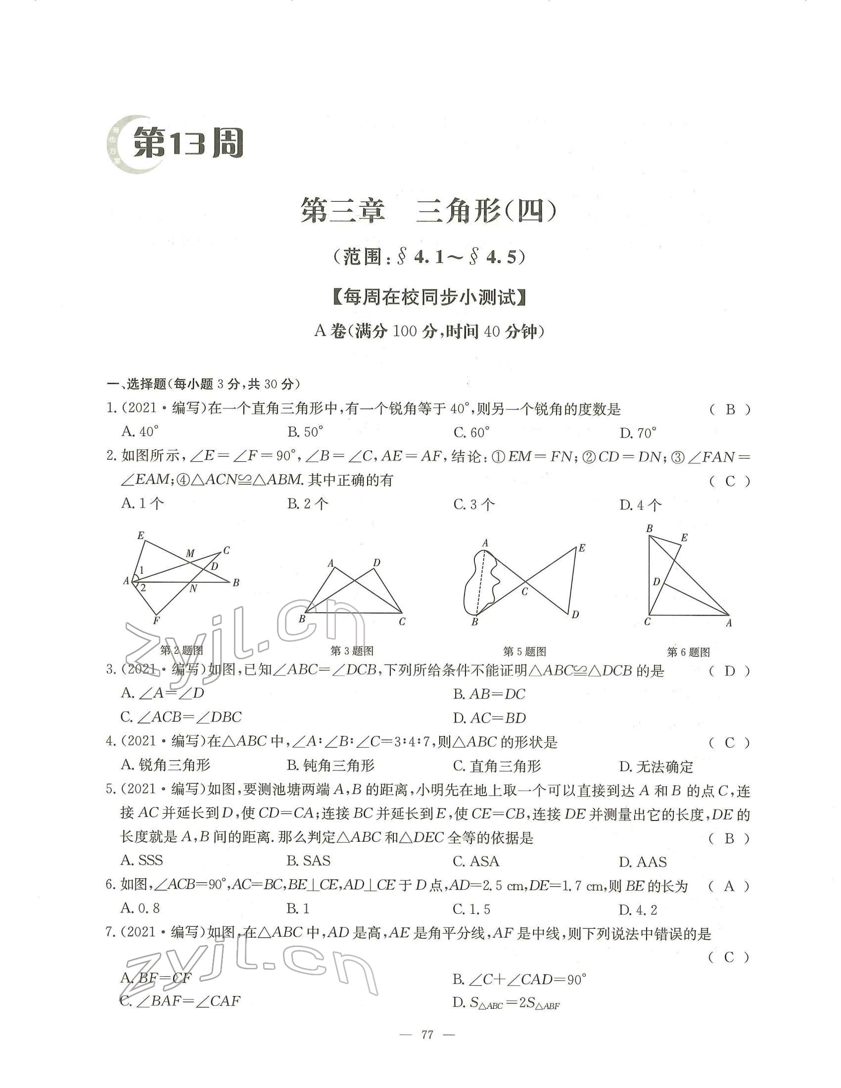 注:目前有些书本章节名称可能整理的还不是很完善,但都是按照顺序排列的,请同学们按照顺序仔细查找。练习册 2022年每周过手最佳方案七年级数学下册北师大版 答案主要是用来给同学们做完题方便对答案用的,请勿直接抄袭。