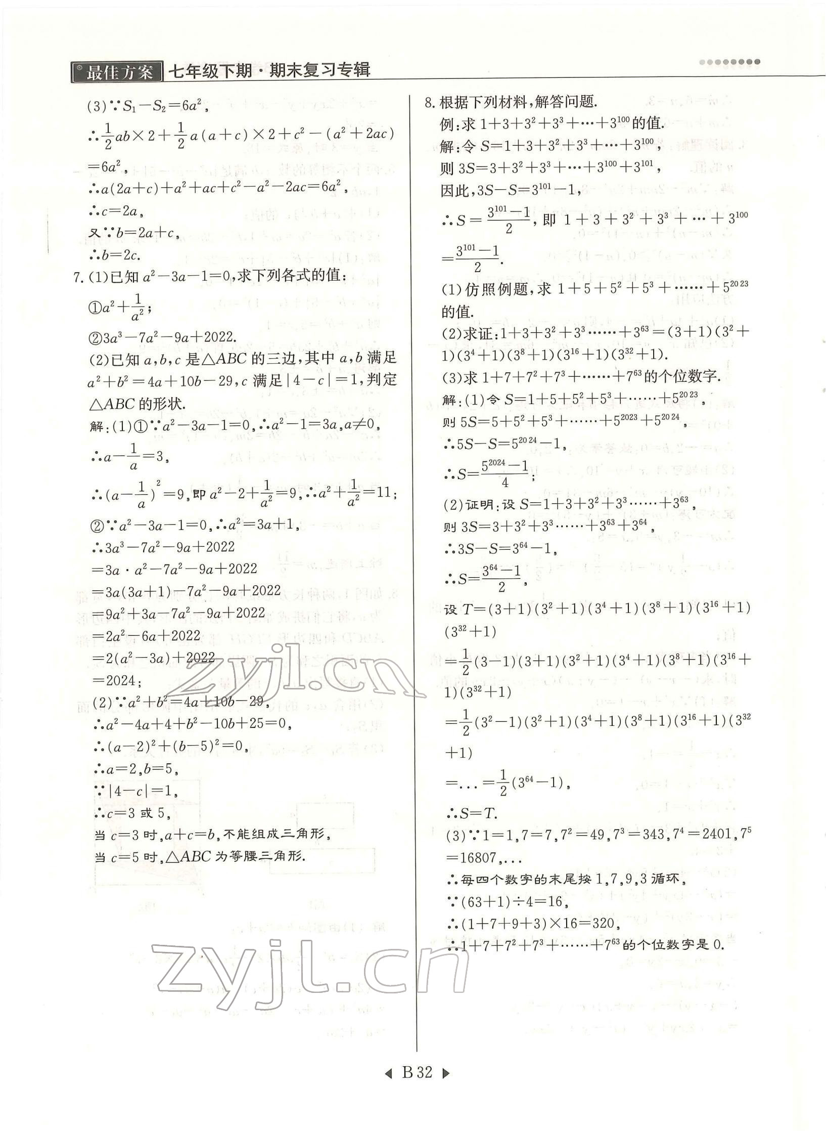 注:目前有些书本章节名称可能整理的还不是很完善,但都是按照顺序排列的,请同学们按照顺序仔细查找。练习册 2022年每周过手最佳方案七年级数学下册北师大版 答案主要是用来给同学们做完题方便对答案用的,请勿直接抄袭。