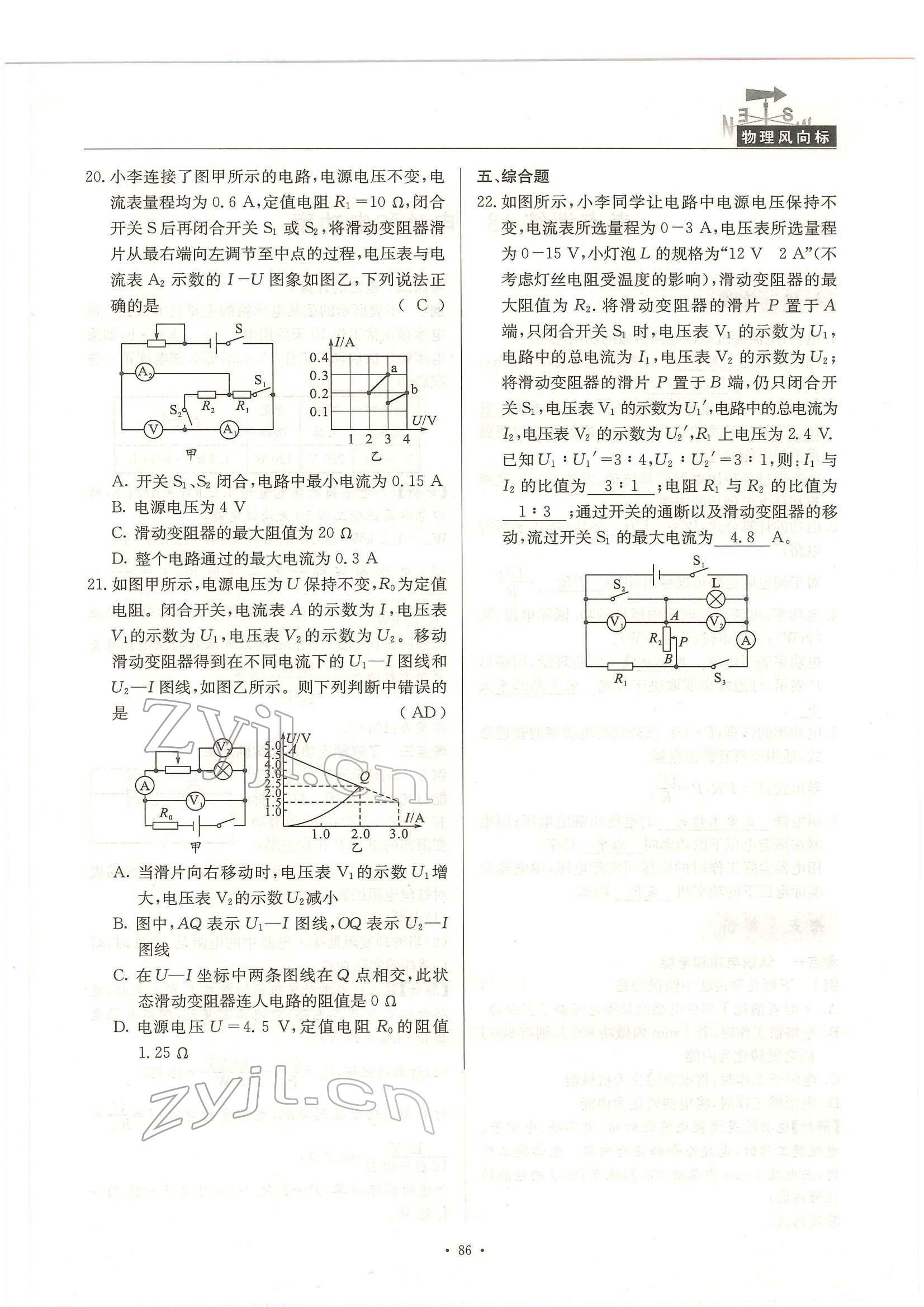 注:目前有些书本章节名称可能整理的还不是很完善,但都是按照顺序排列的,请同学们按照顺序仔细查找。练习册 2022年物理风向标中考总复习 答案主要是用来给同学们做完题方便对答案用的,请勿直接抄袭。