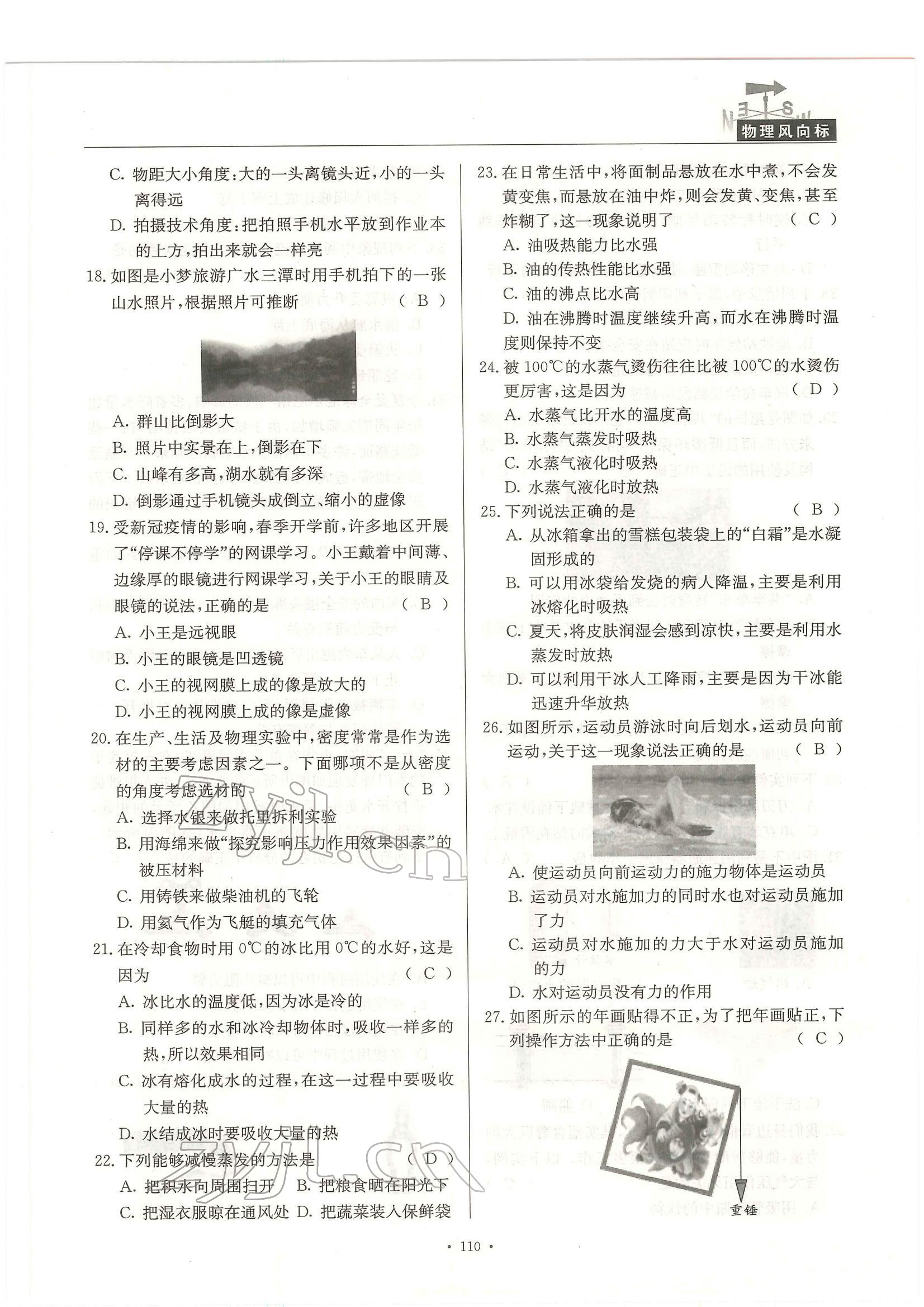 注:目前有些书本章节名称可能整理的还不是很完善,但都是按照顺序排列的,请同学们按照顺序仔细查找。练习册 2022年物理风向标中考总复习 答案主要是用来给同学们做完题方便对答案用的,请勿直接抄袭。