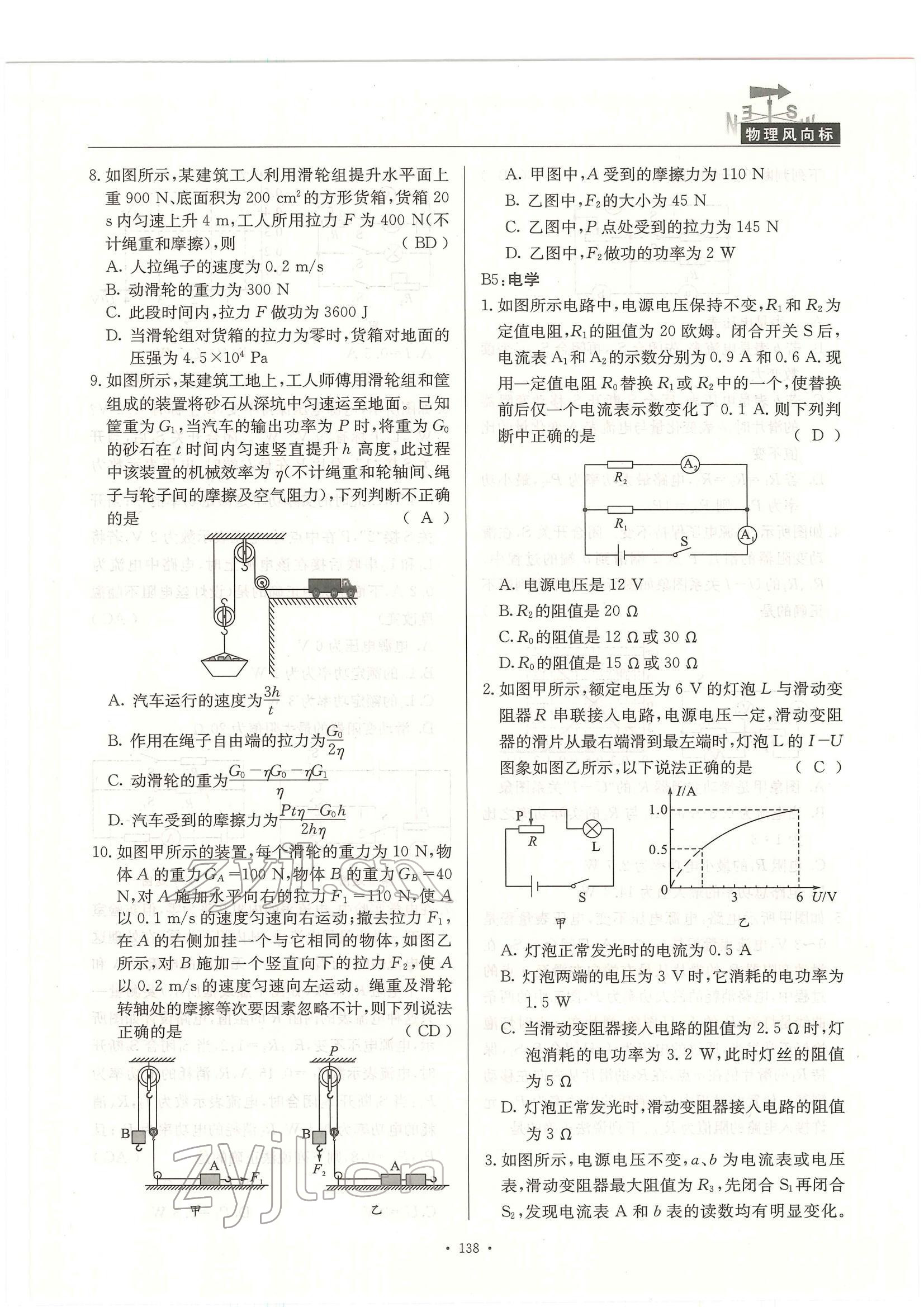 注:目前有些书本章节名称可能整理的还不是很完善,但都是按照顺序排列的,请同学们按照顺序仔细查找。练习册 2022年物理风向标中考总复习 答案主要是用来给同学们做完题方便对答案用的,请勿直接抄袭。