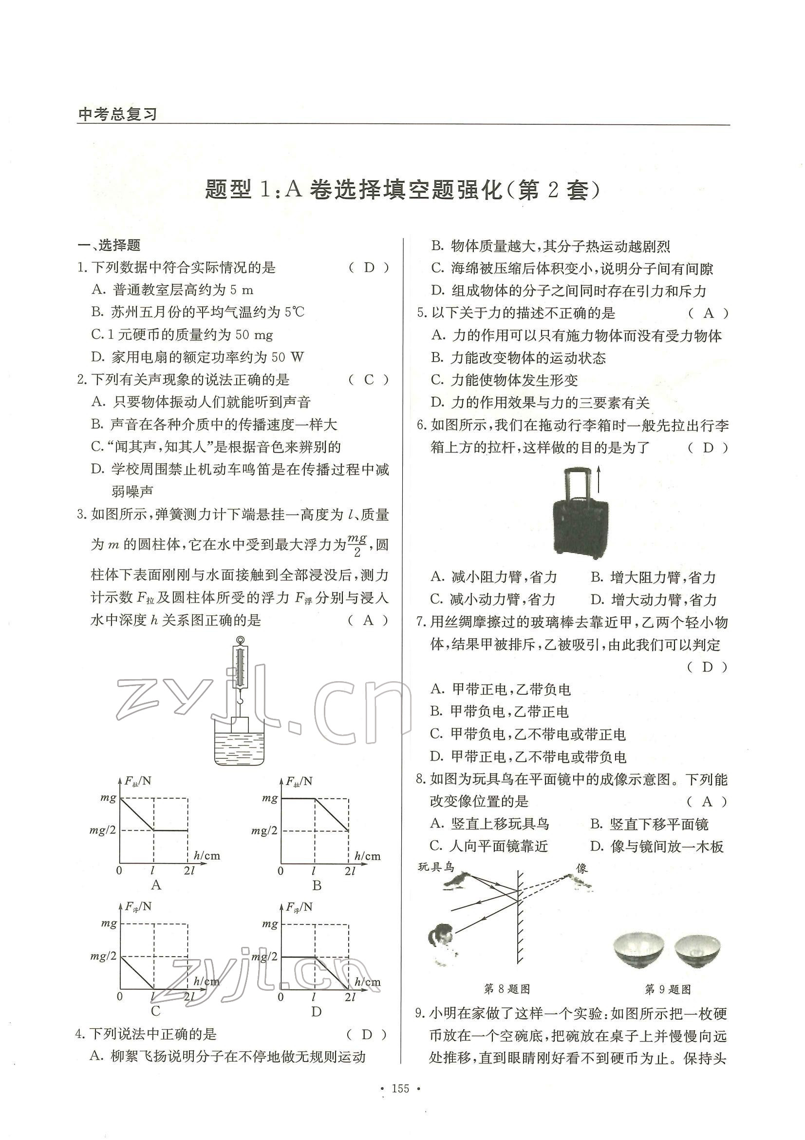 注:目前有些书本章节名称可能整理的还不是很完善,但都是按照顺序排列的,请同学们按照顺序仔细查找。练习册 2022年物理风向标中考总复习 答案主要是用来给同学们做完题方便对答案用的,请勿直接抄袭。