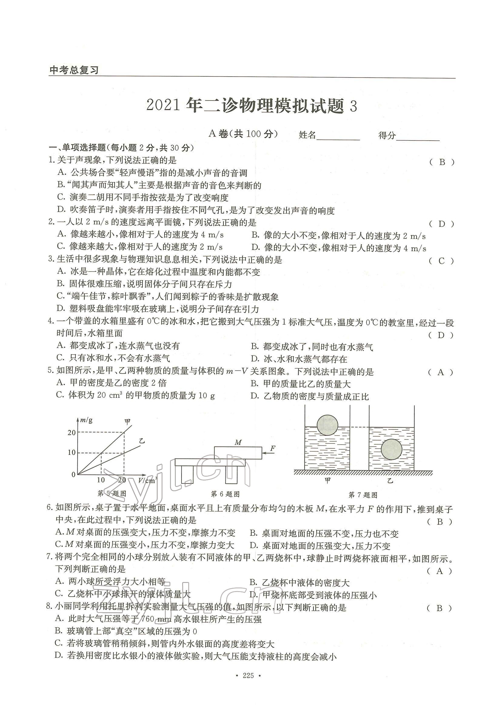 注:目前有些书本章节名称可能整理的还不是很完善,但都是按照顺序排列的,请同学们按照顺序仔细查找。练习册 2022年物理风向标中考总复习 答案主要是用来给同学们做完题方便对答案用的,请勿直接抄袭。