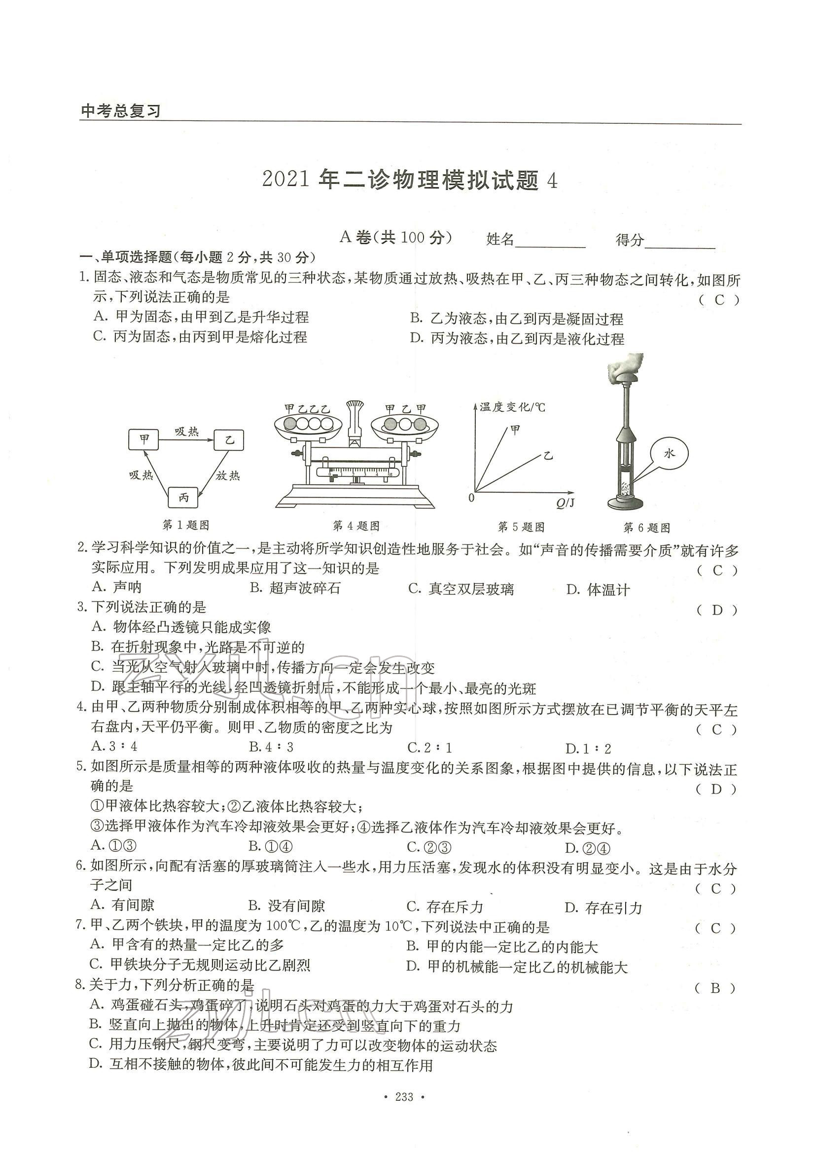 注:目前有些书本章节名称可能整理的还不是很完善,但都是按照顺序排列的,请同学们按照顺序仔细查找。练习册 2022年物理风向标中考总复习 答案主要是用来给同学们做完题方便对答案用的,请勿直接抄袭。