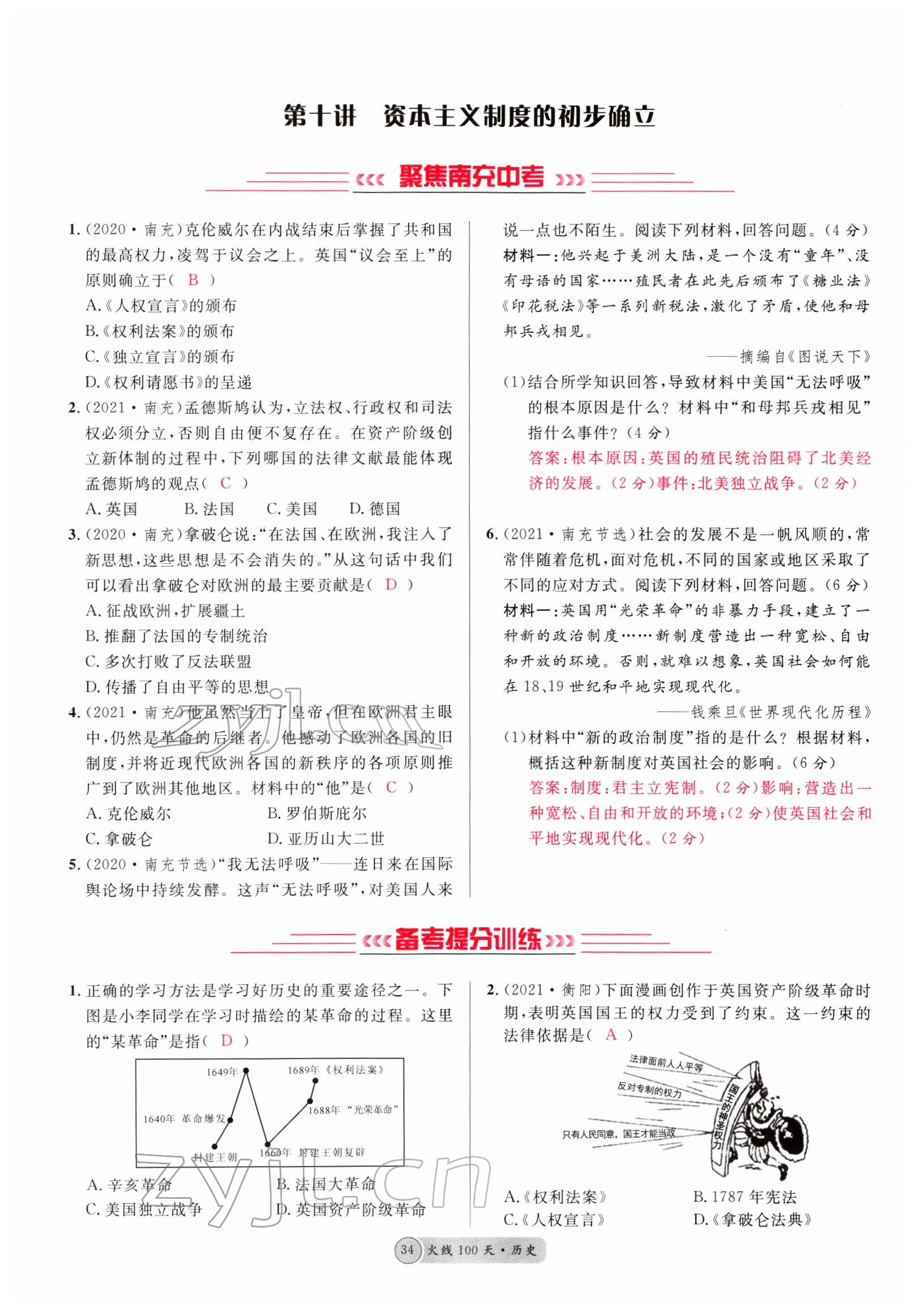2022年火线100天中考滚动复习法历史南充专版