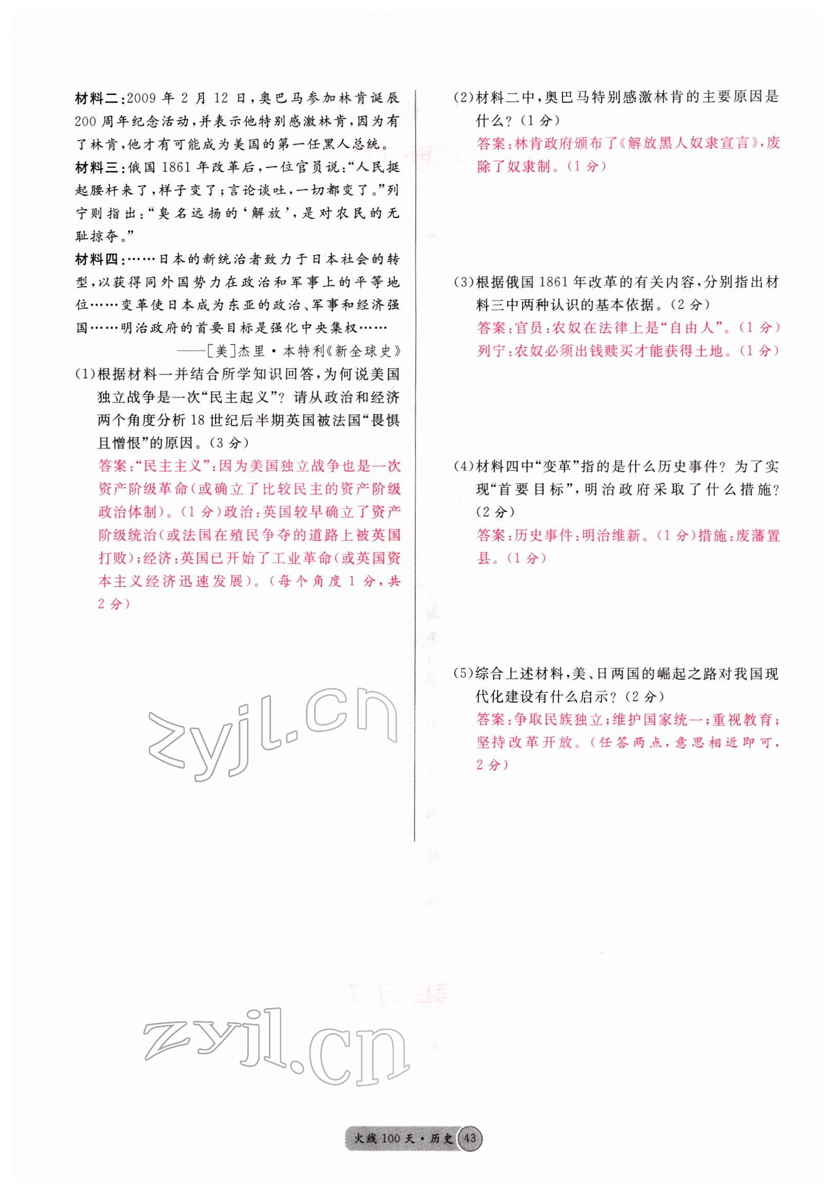 2022年火线100天中考滚动复习法历史南充专版