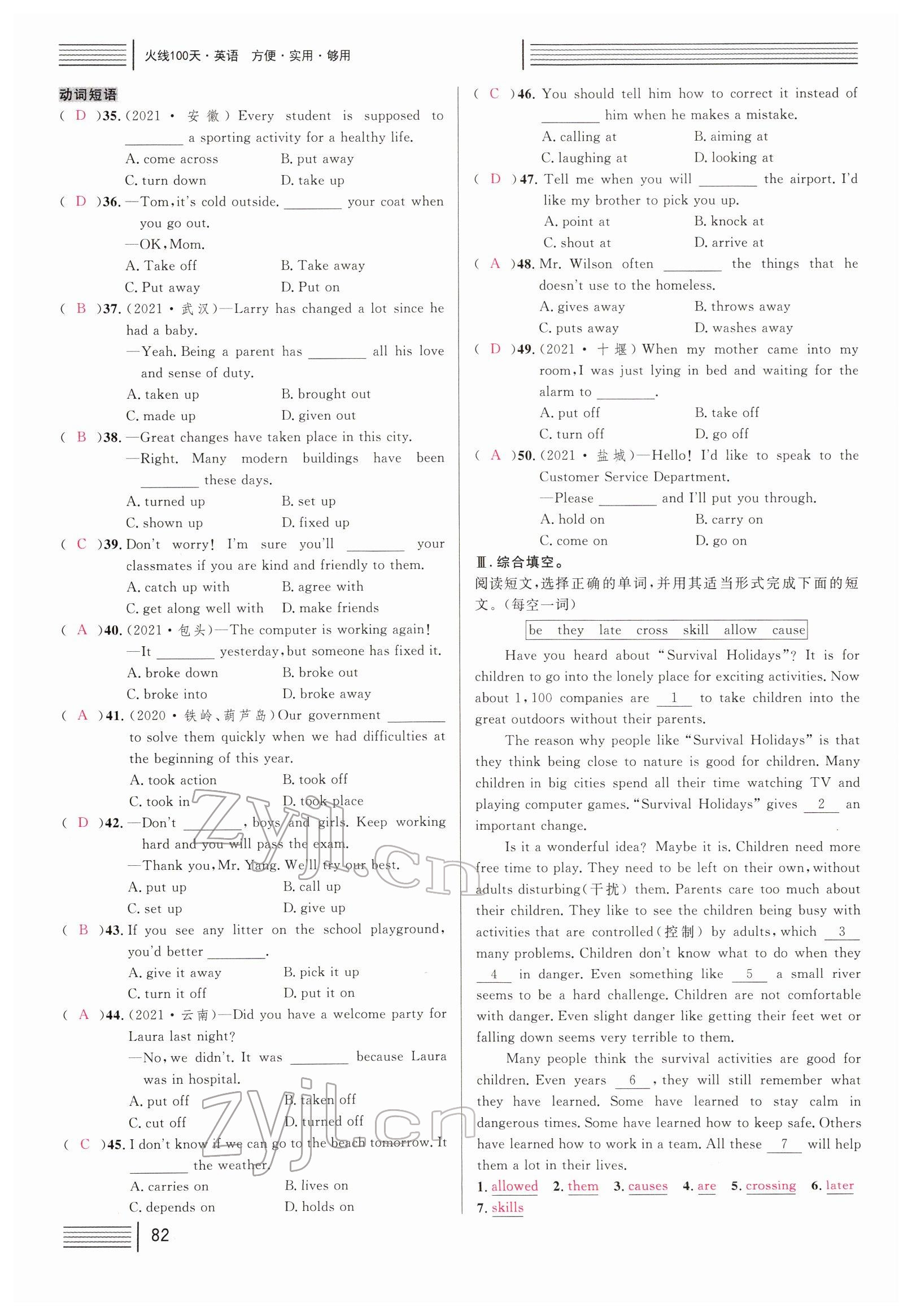 注:目前有些书本章节名称可能整理的还不是很完善,但都是按照顺序排列的,请同学们按照顺序仔细查找。练习册 2022年火线100天中考滚动复习法英语四川专版 答案主要是用来给同学们做完题方便对答案用的,请勿直接抄袭。