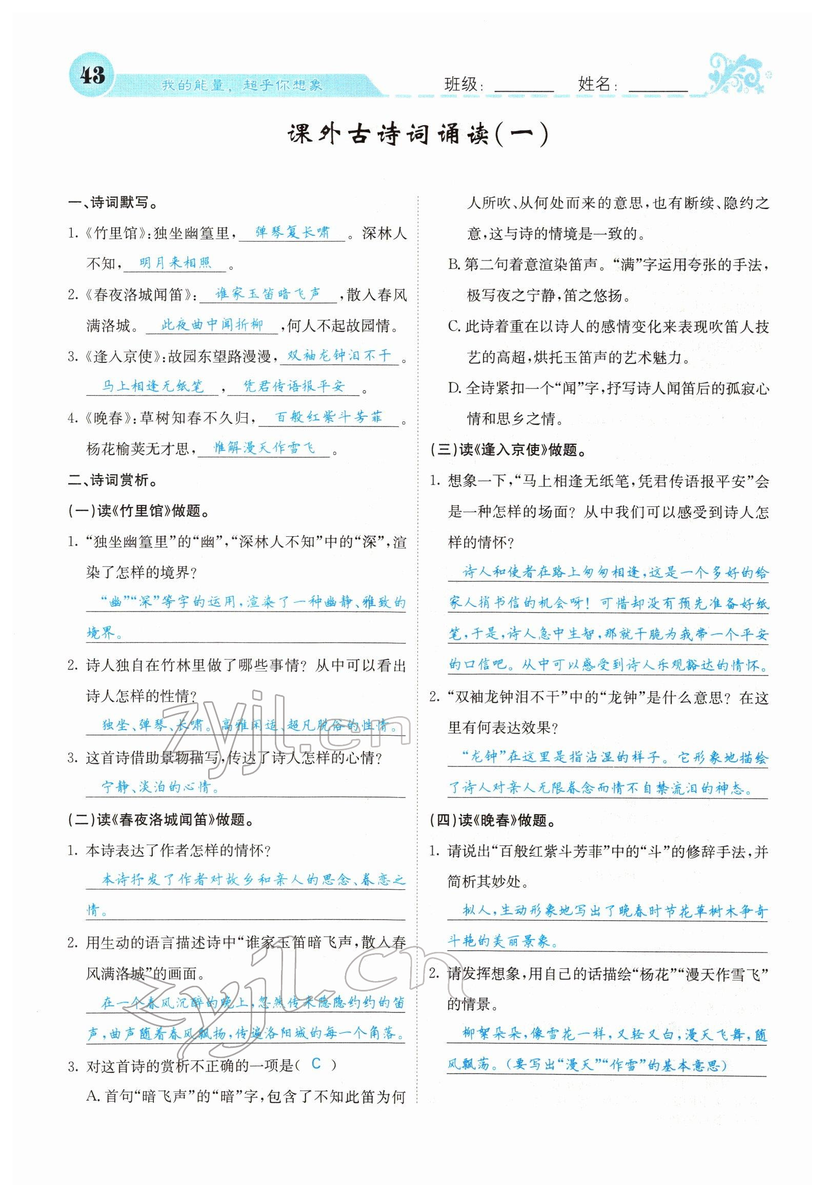 - 参考答案第43页