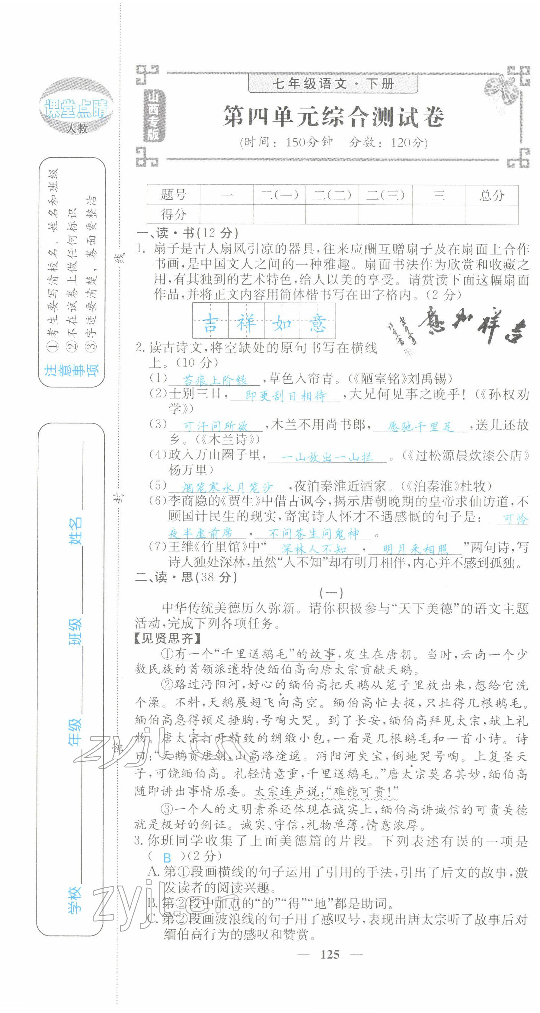 - 参考答案第53页