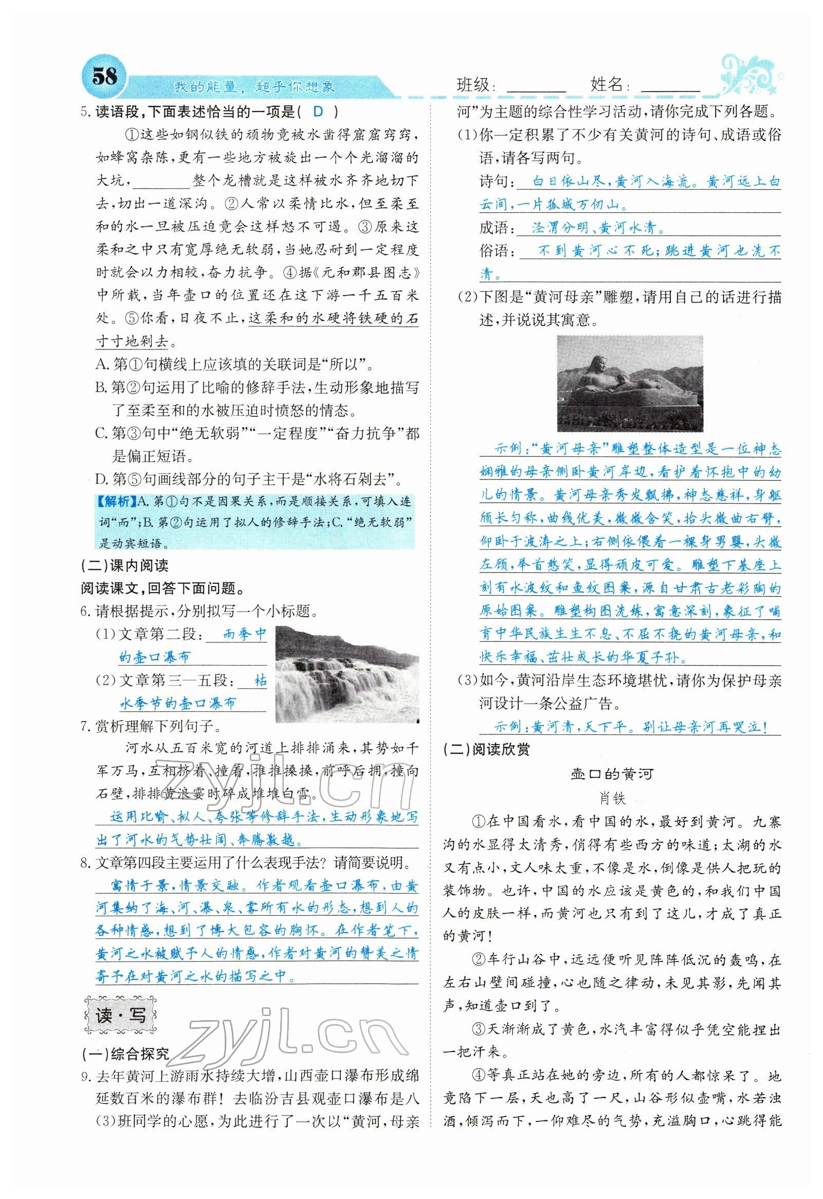 《2022年课堂点睛八年级语文下册人教版山西专版》