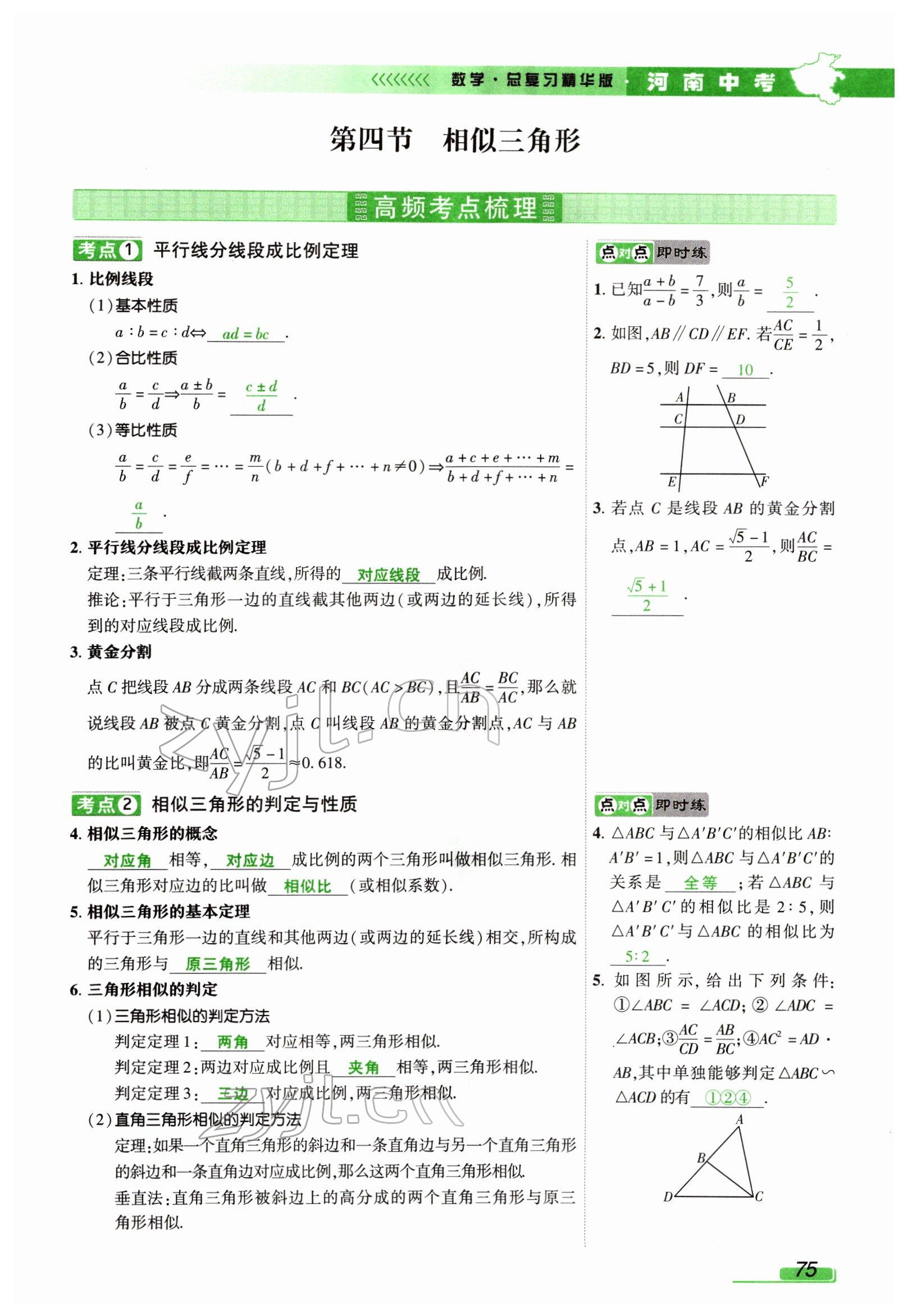 2022年河南中考南方出版社数学