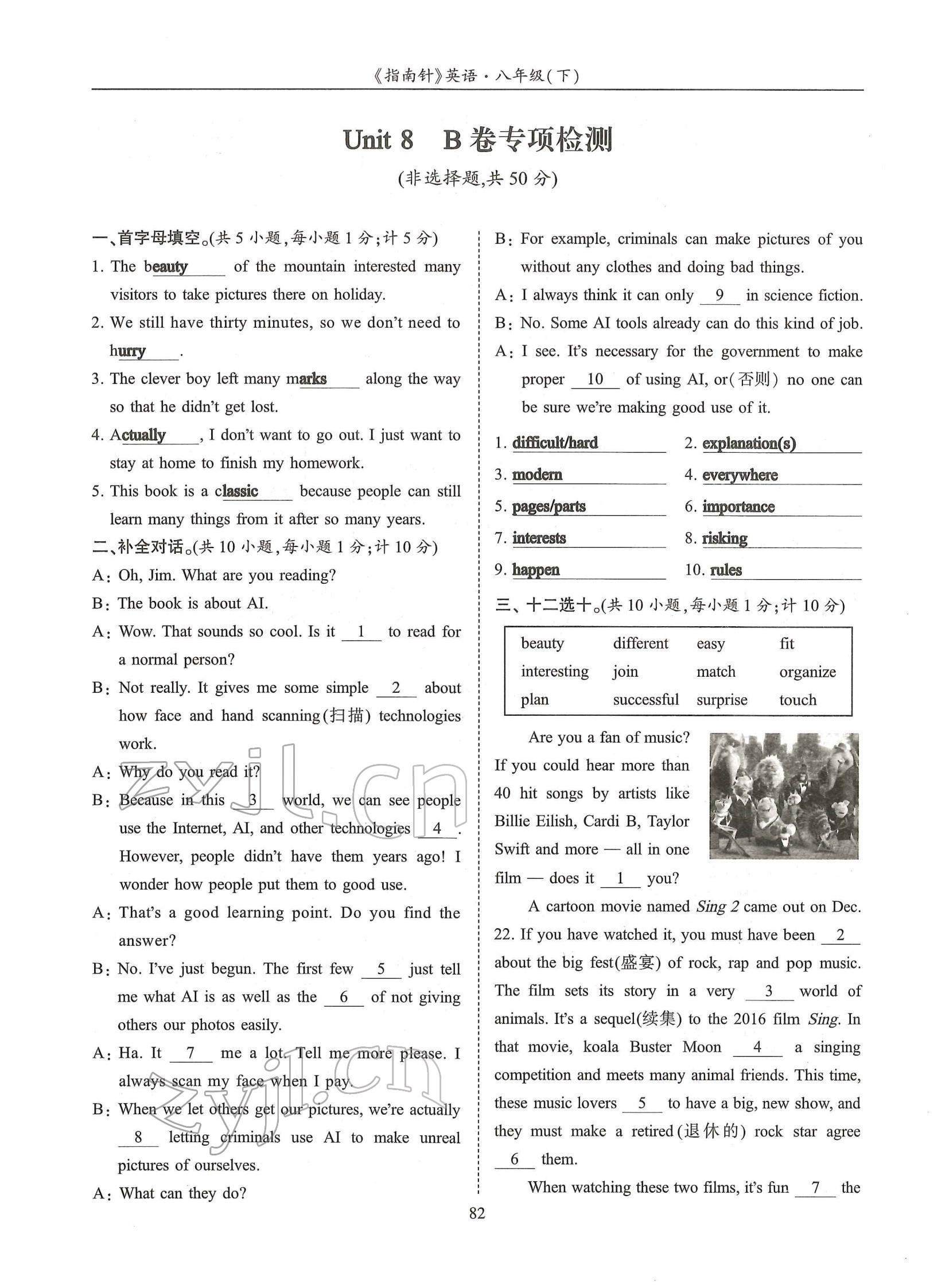 注:目前有些书本章节名称可能整理的还不是很完善,但都是按照顺序排列的,请同学们按照顺序仔细查找。练习册 2022年指南针高分必备八年级英语下册人教版 答案主要是用来给同学们做完题方便对答案用的,请勿直接抄袭。