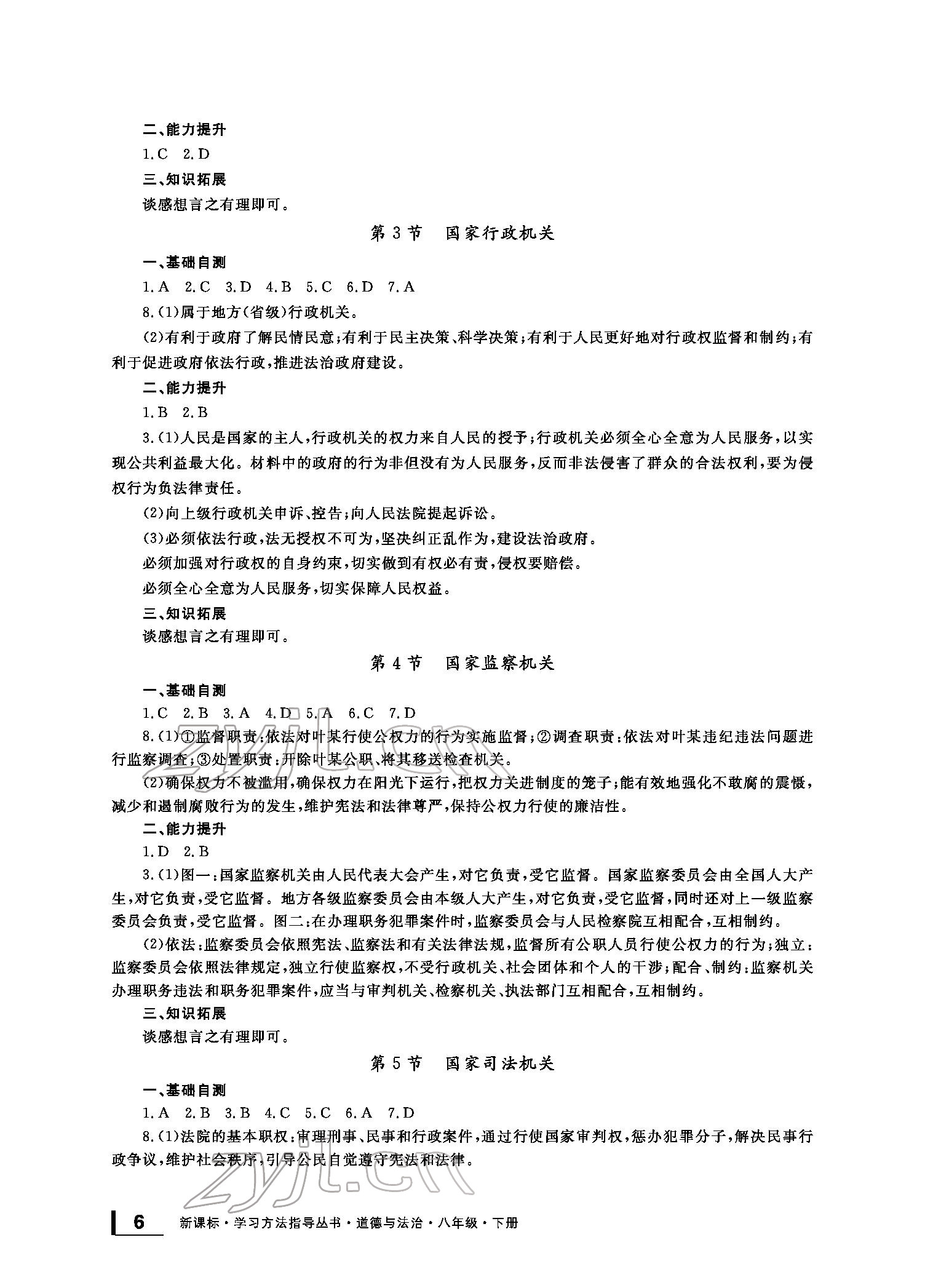 注:目前有些书本章节名称可能整理的还不是很完善,但都是按照顺序排列的,请同学们按照顺序仔细查找。练习册 2022新课标学习方法指导丛书八年级道德与法治下册人教版 答案主要是用来给同学们做完题方便对答案用的,请勿直接抄袭。
