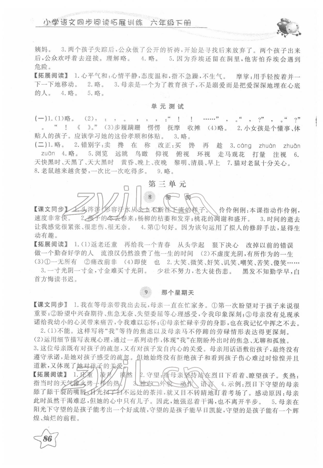 《2022年小学语文同步阅读拓展训练六年级下册人教版》