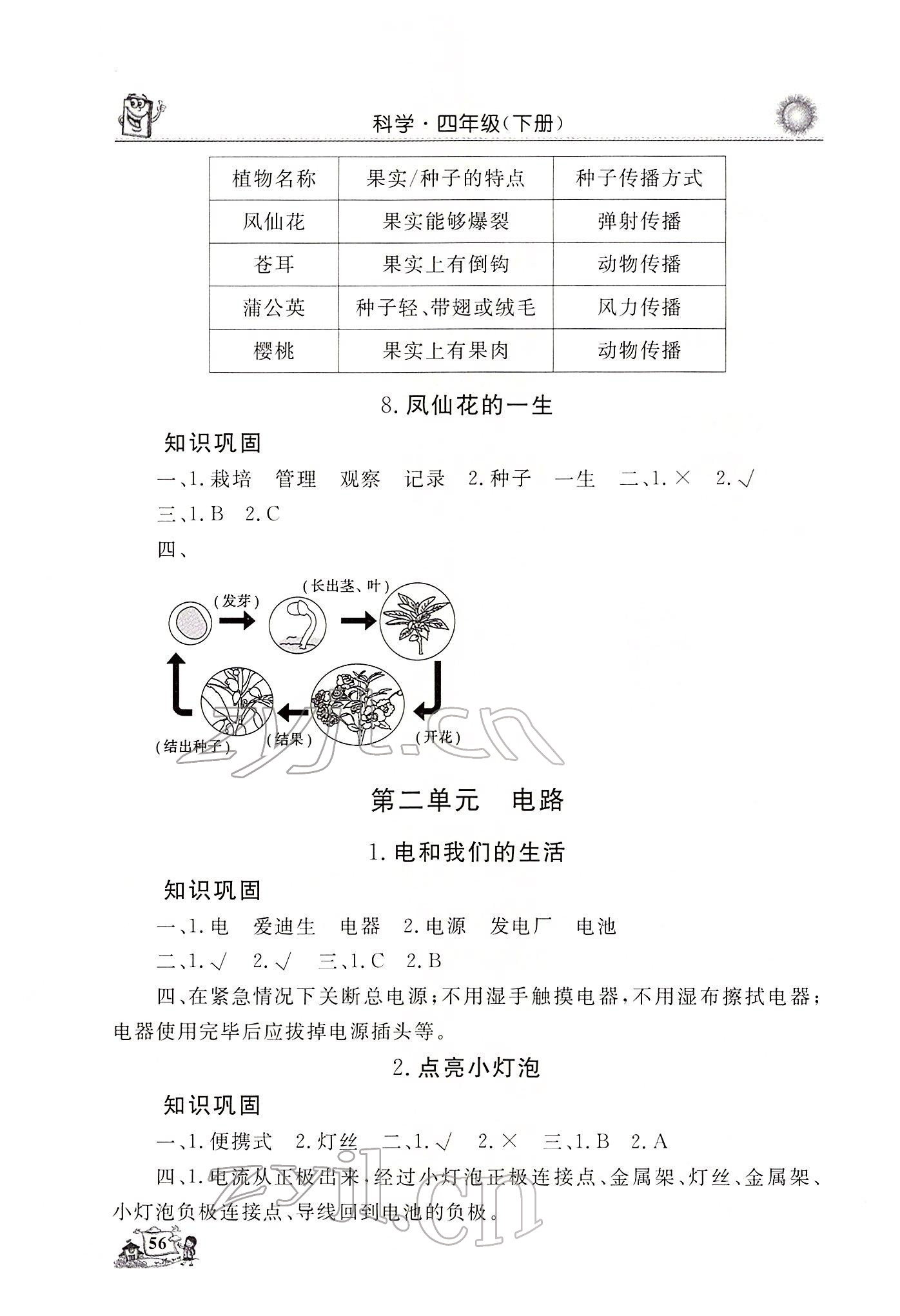 2022年名师导学伴你行同步练习四年级科学下册教科版