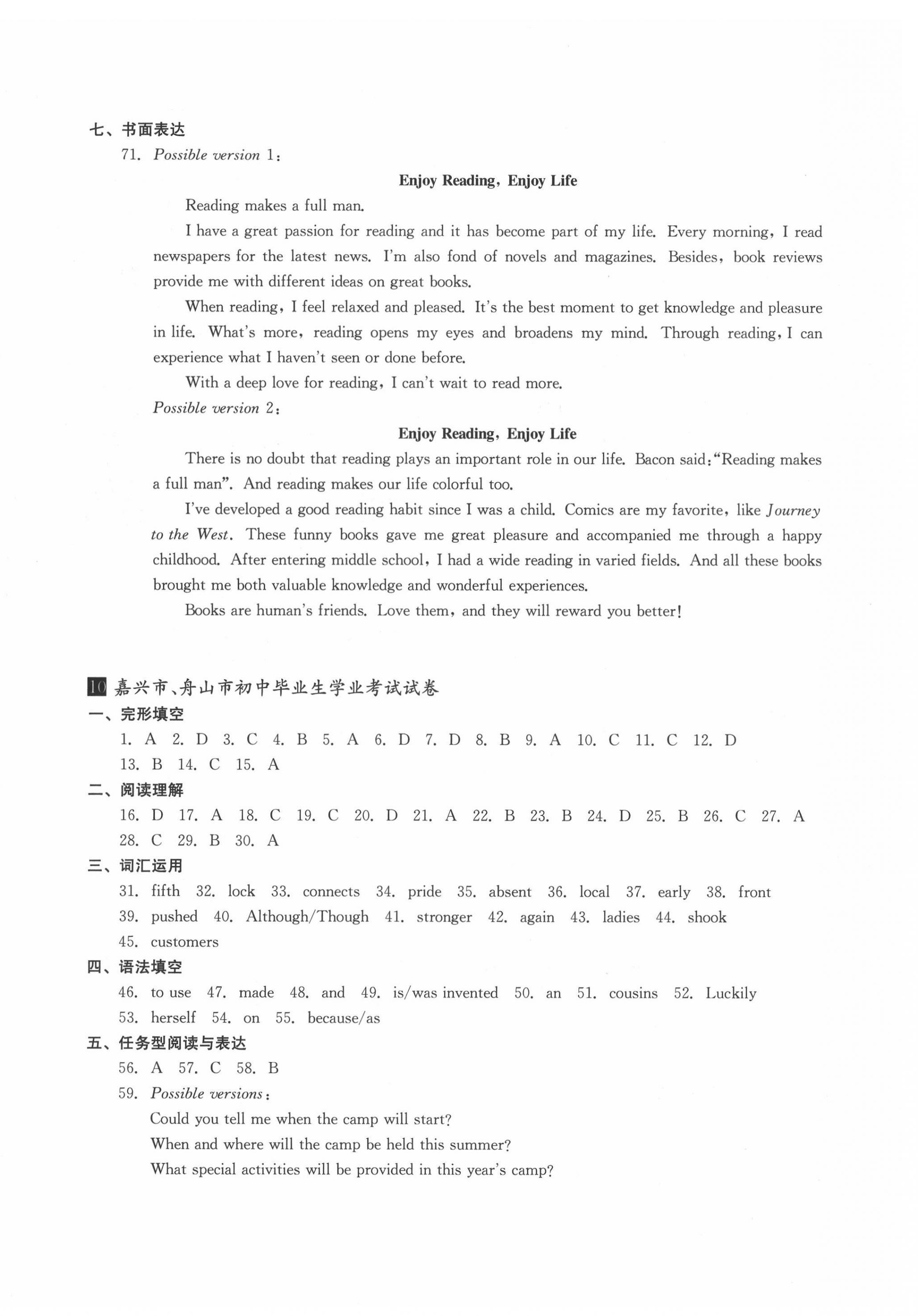注:目前有些书本章节名称可能整理的还不是很完善,但都是按照顺序排列的,请同学们按照顺序仔细查找。练习册 2022年浙江省初中毕业生学业考试真题试卷集中考英语 答案主要是用来给同学们做完题方便对答案用的,请勿直接抄袭。