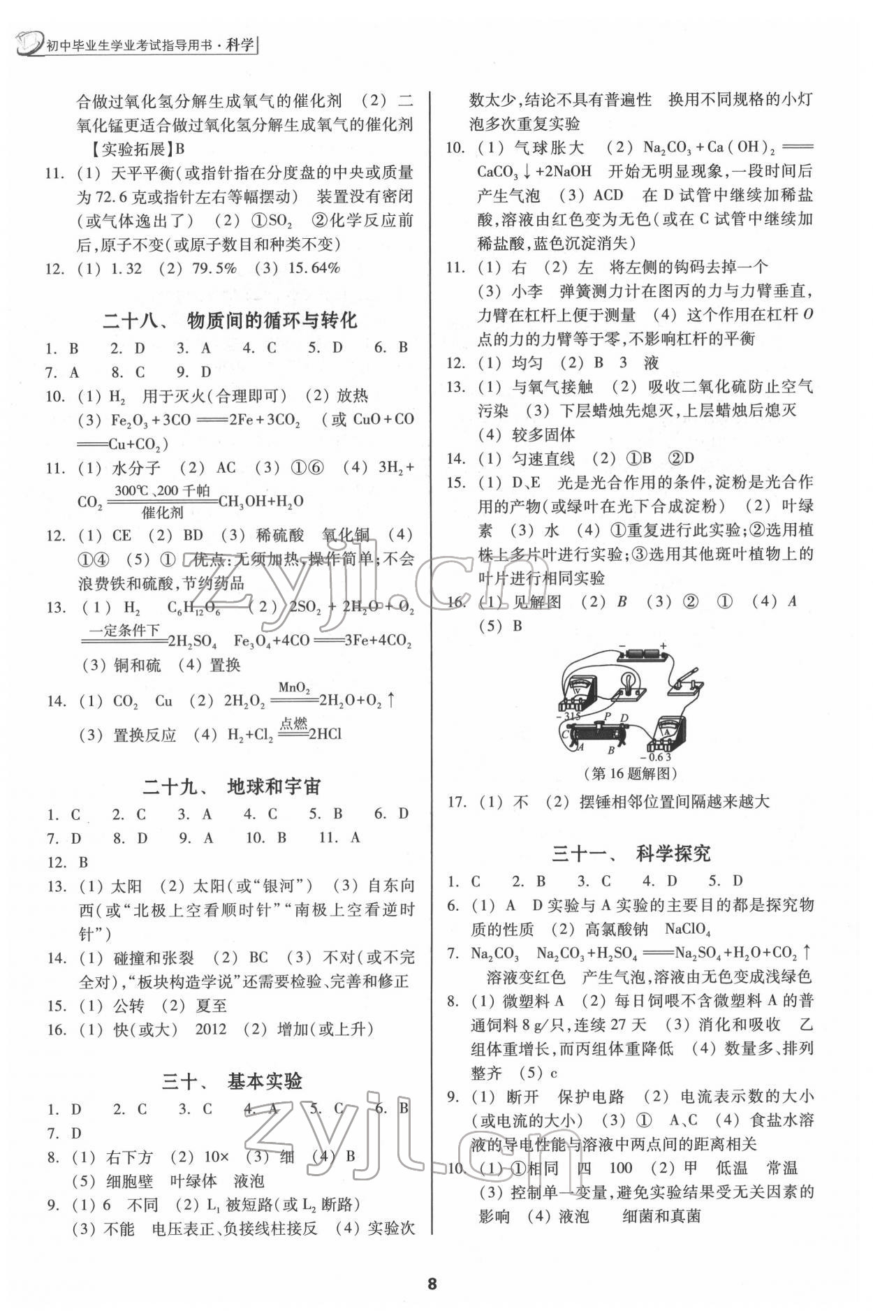 注:目前有些书本章节名称可能整理的还不是很完善,但都是按照顺序排列的,请同学们按照顺序仔细查找。练习册 2022年初中毕业生学业考试指导书中考科学 答案主要是用来给同学们做完题方便对答案用的,请勿直接抄袭。