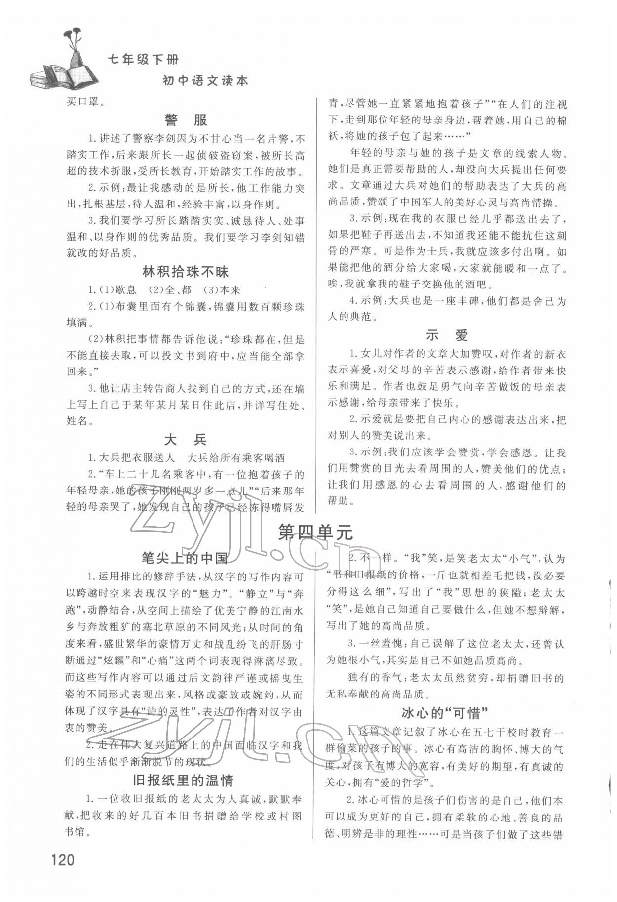 注:目前有些书本章节名称可能整理的还不是很完善,但都是按照顺序排列的,请同学们按照顺序仔细查找。练习册 2022年语文读本山东文艺出版社七年级语文下册人教版五四制 答案主要是用来给同学们做完题方便对答案用的,请勿直接抄袭。
