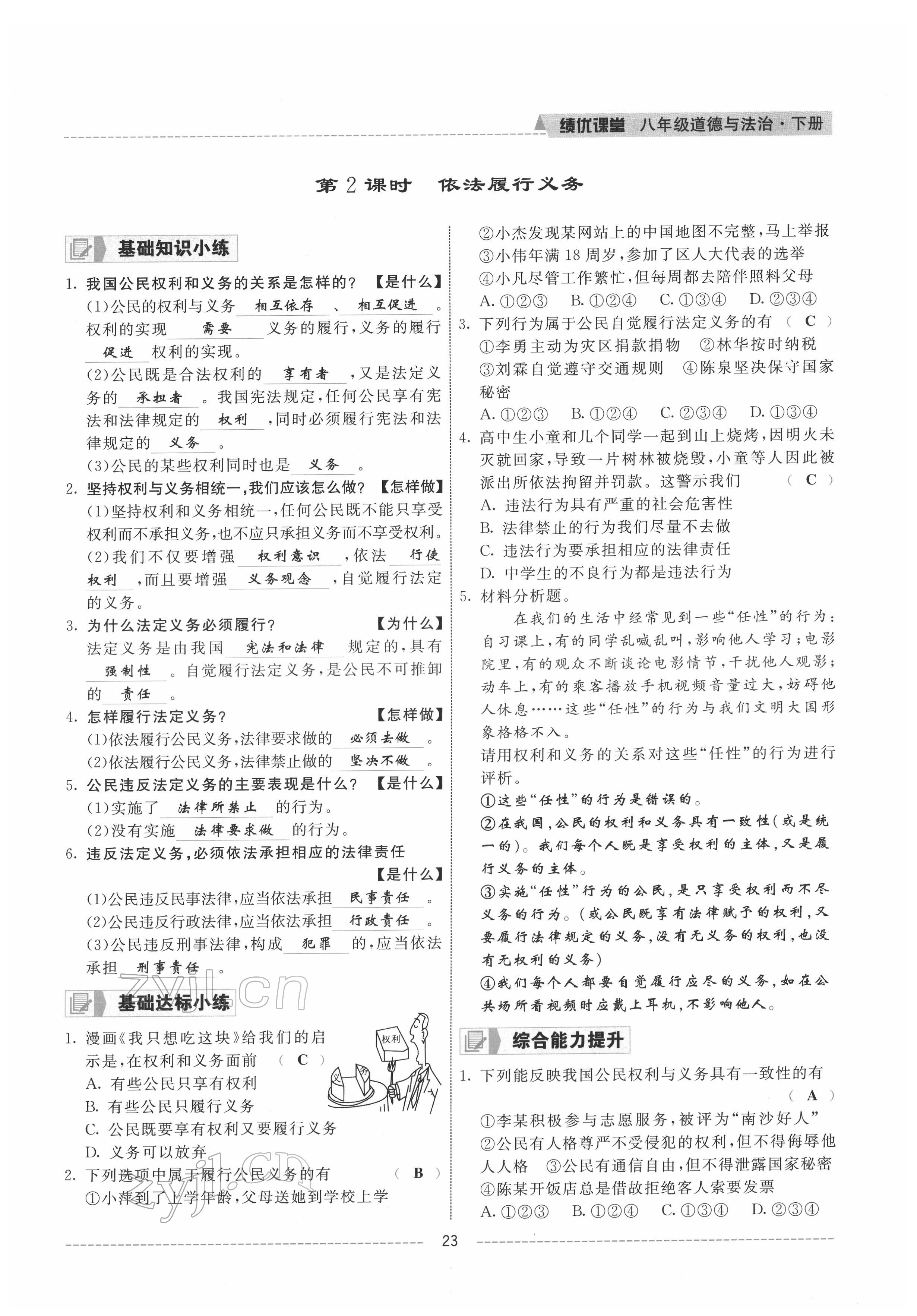 2022年绩优课堂高效提升满分备考八年级道德与法治下册人教版