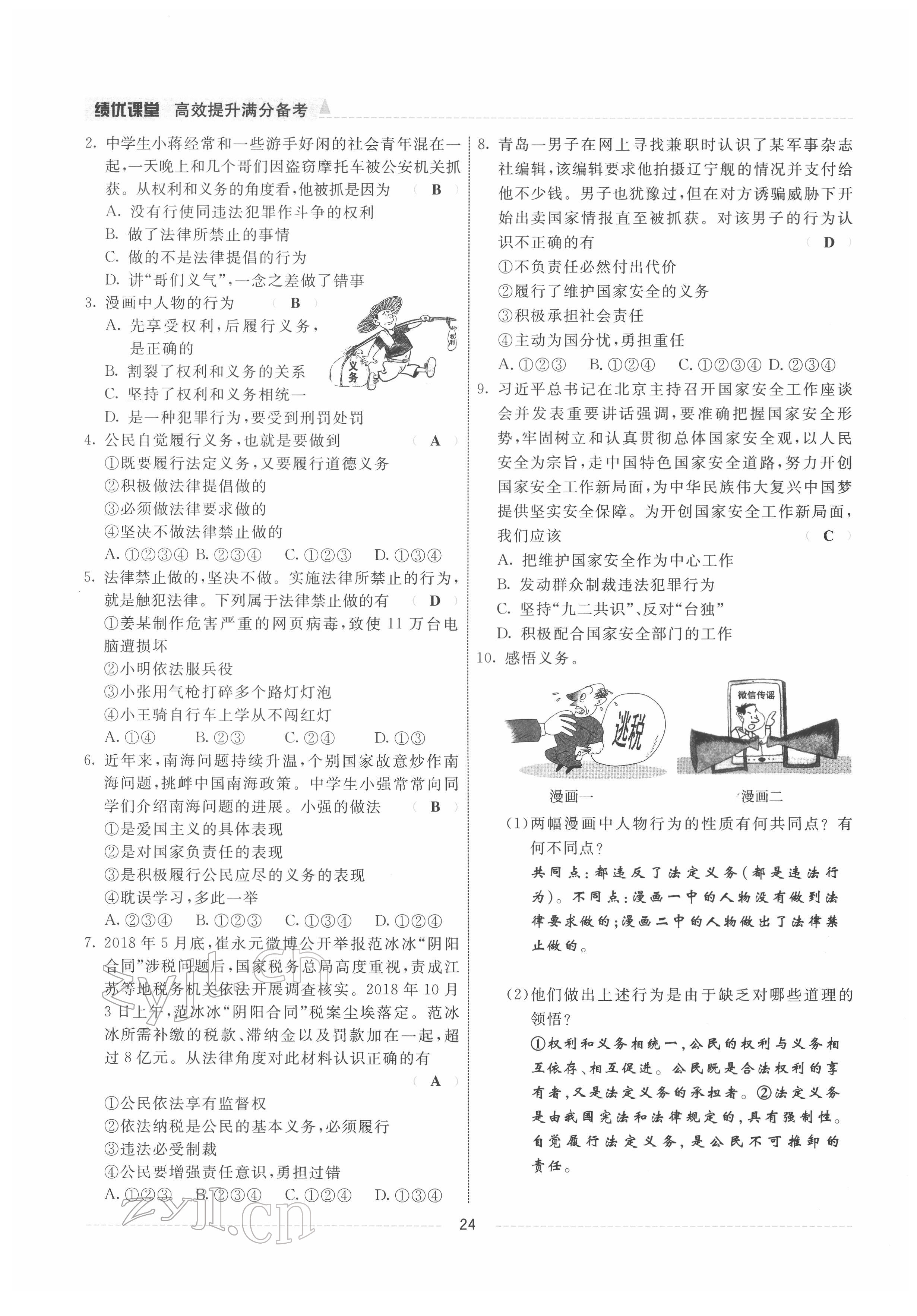 2022年绩优课堂高效提升满分备考八年级道德与法治下册人教版