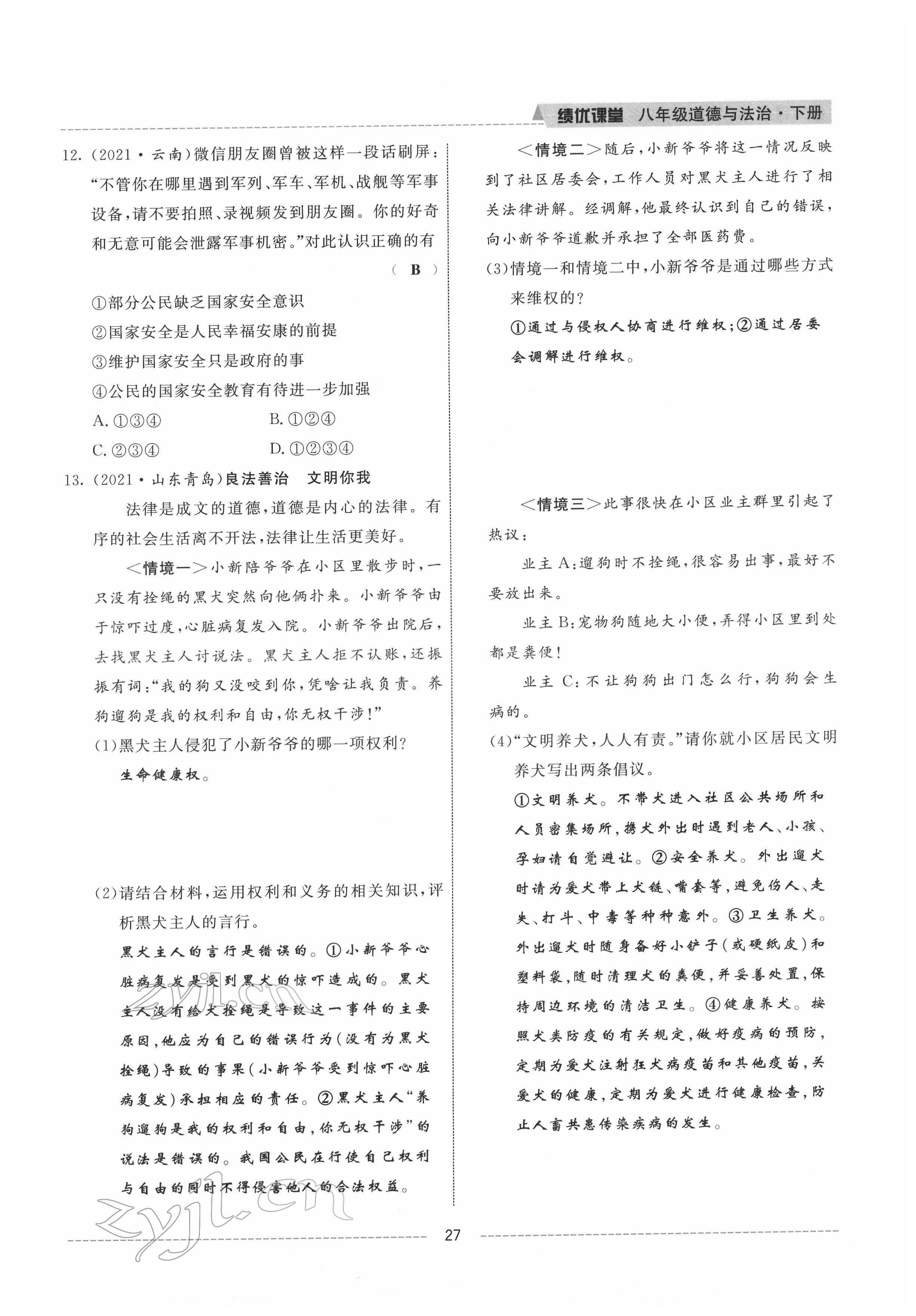 2022年绩优课堂高效提升满分备考八年级道德与法治下册人教版