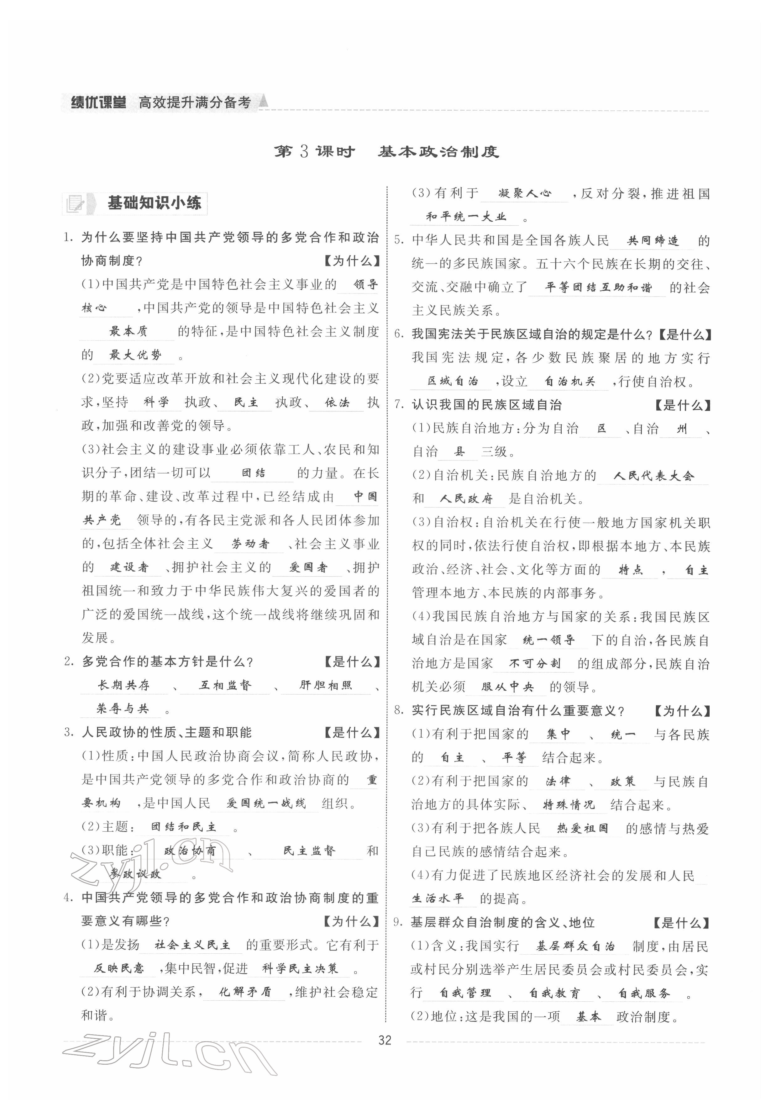 2022年绩优课堂高效提升满分备考八年级道德与法治下册人教版