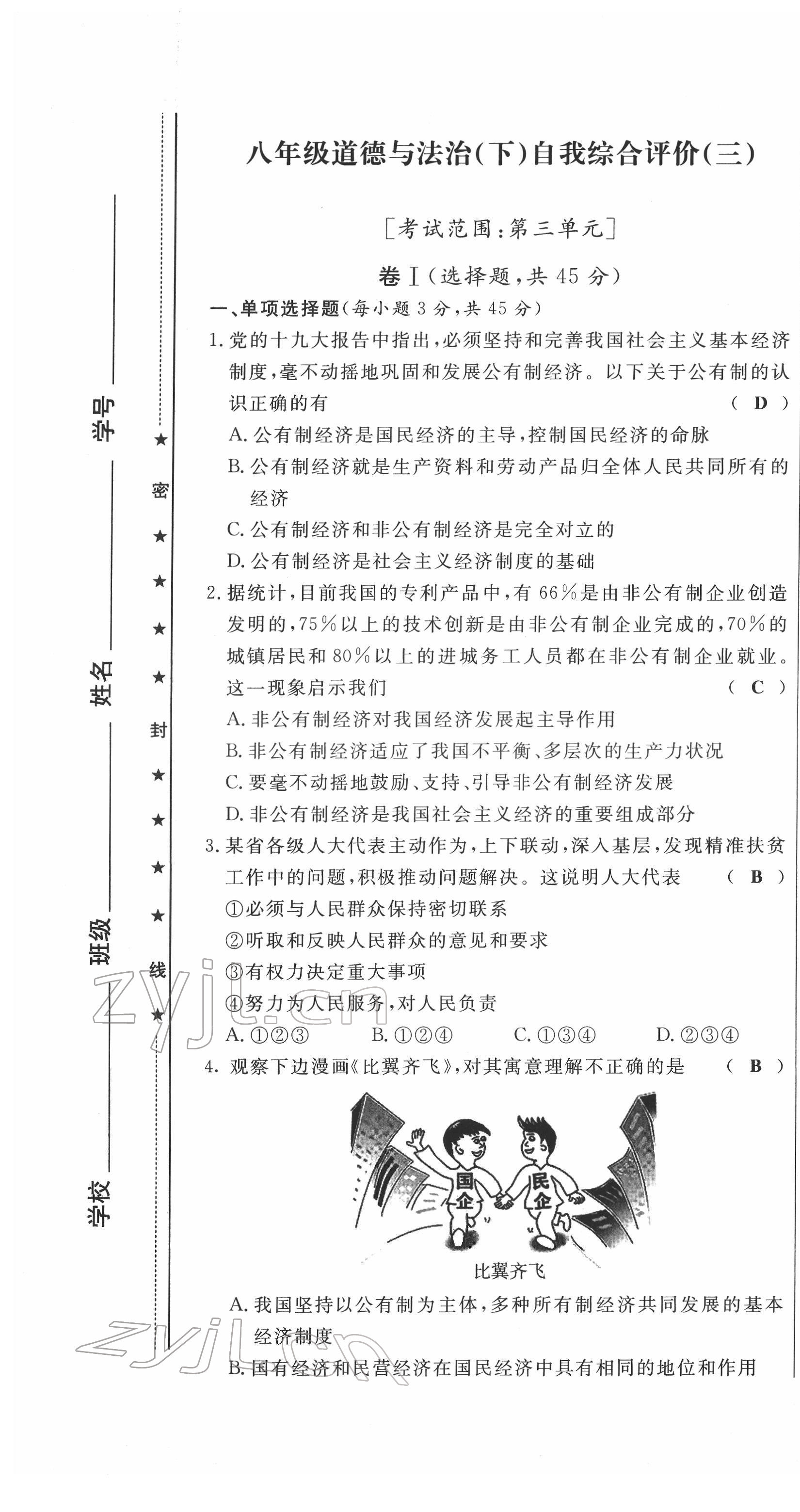 注:目前有些书本章节名称可能整理的还不是很完善,但都是按照顺序排列的,请同学们按照顺序仔细查找。练习册 2022年绩优课堂高效提升满分备考八年级道德与法治下册人教版 答案主要是用来给同学们做完题方便对答案用的,请勿直接抄袭。