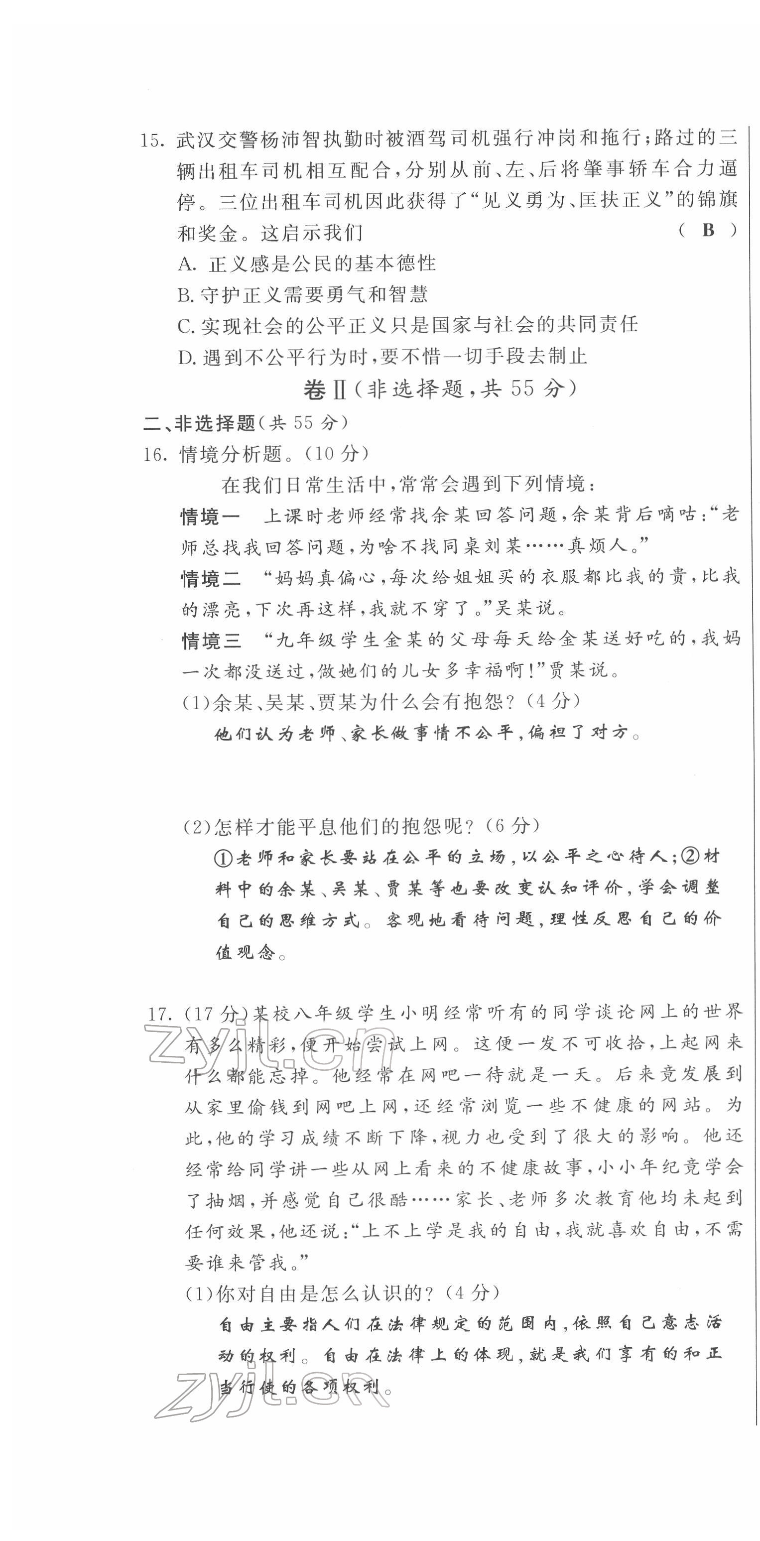 注:目前有些书本章节名称可能整理的还不是很完善,但都是按照顺序排列的,请同学们按照顺序仔细查找。练习册 2022年绩优课堂高效提升满分备考八年级道德与法治下册人教版 答案主要是用来给同学们做完题方便对答案用的,请勿直接抄袭。