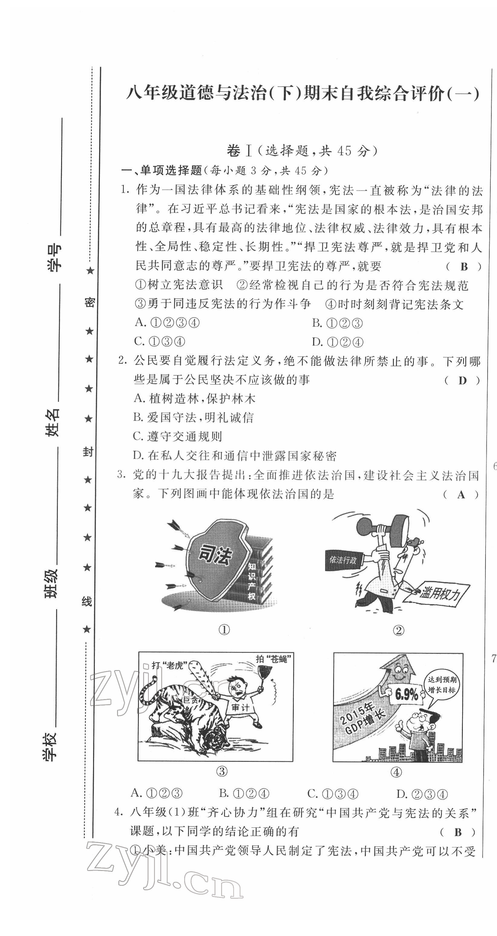注:目前有些书本章节名称可能整理的还不是很完善,但都是按照顺序排列的,请同学们按照顺序仔细查找。练习册 2022年绩优课堂高效提升满分备考八年级道德与法治下册人教版 答案主要是用来给同学们做完题方便对答案用的,请勿直接抄袭。