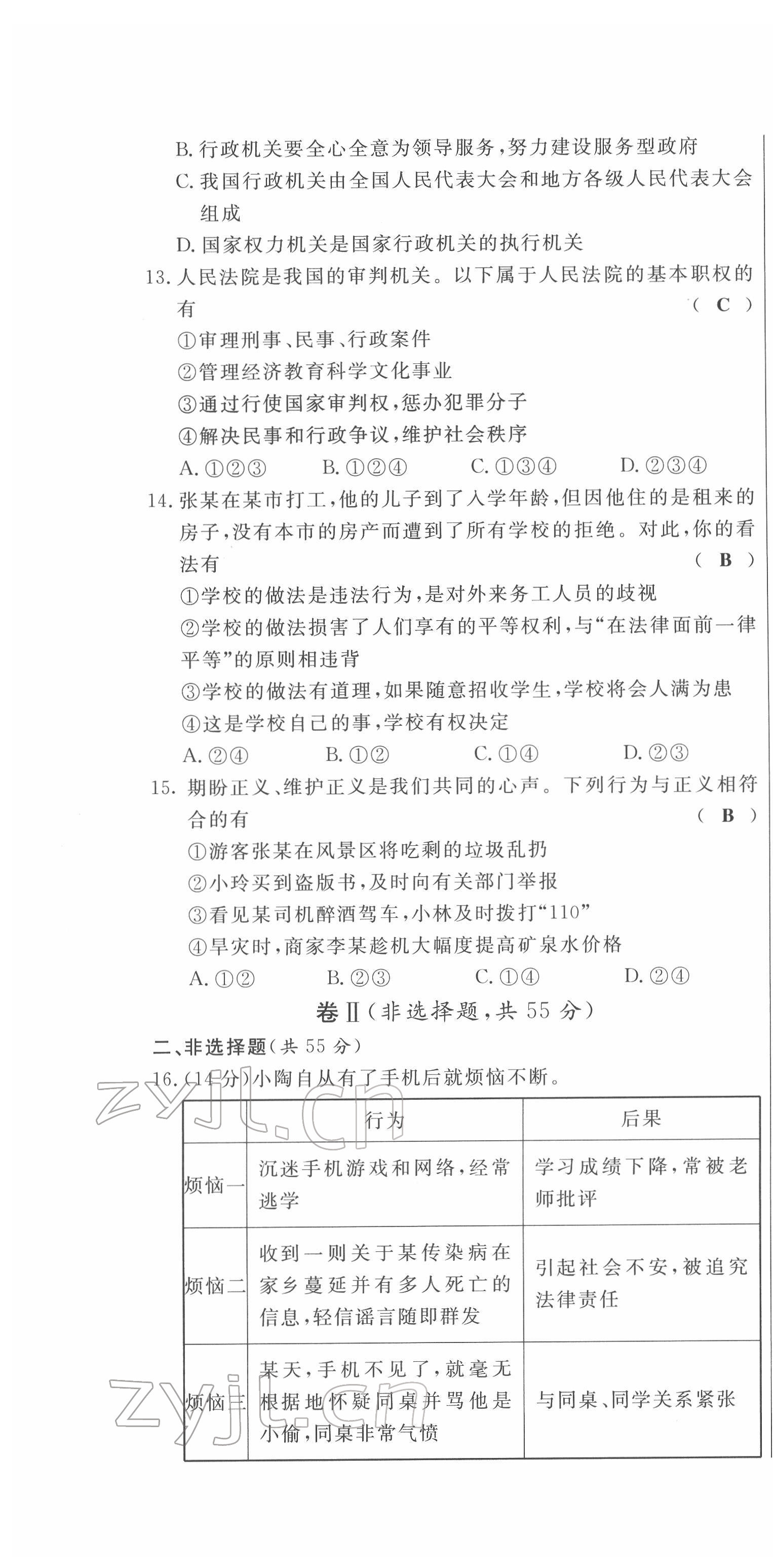 注:目前有些书本章节名称可能整理的还不是很完善,但都是按照顺序排列的,请同学们按照顺序仔细查找。练习册 2022年绩优课堂高效提升满分备考八年级道德与法治下册人教版 答案主要是用来给同学们做完题方便对答案用的,请勿直接抄袭。